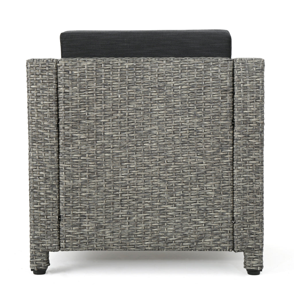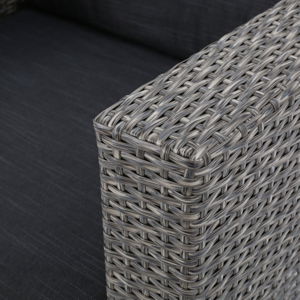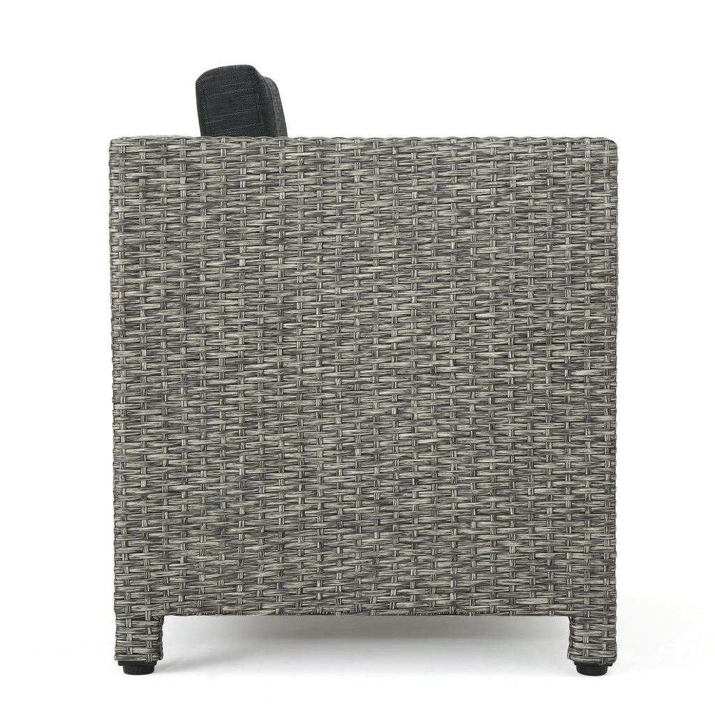 - These outdoor wicker club chairs are a fun addition to any outdoor space. The cushions are made with water resistant fabric and are extra padded for maximum comfort. These functional chairs are durable and will compliment any outdoor arrangement with a pop of color and style.