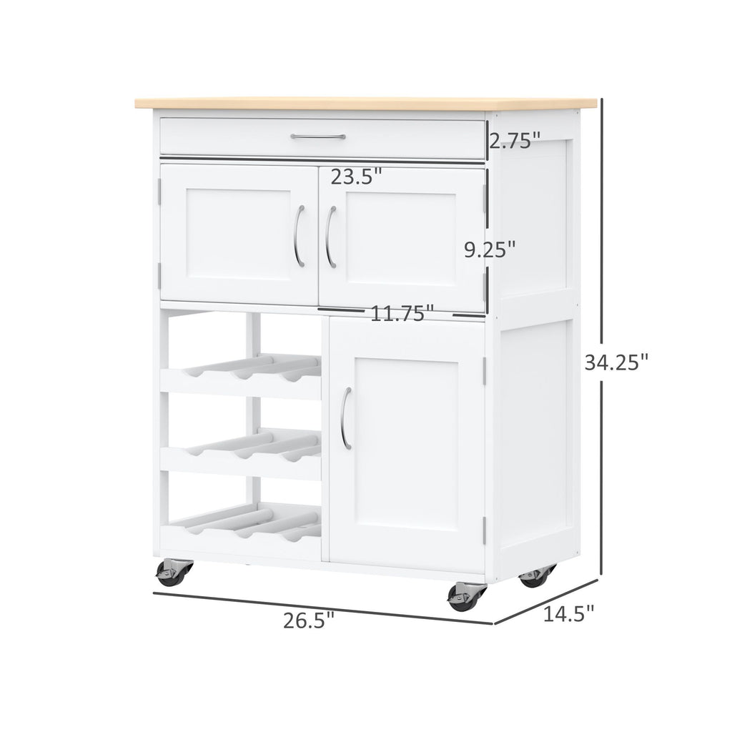 - Organize Your Kitchen: Two storage cabinets and a drawer in this butcher block island give you plenty of room for holding kitchen accessories. There are 3 rows of wine bottle racks on the bottom, providing ample storage for up to 9 of your best.