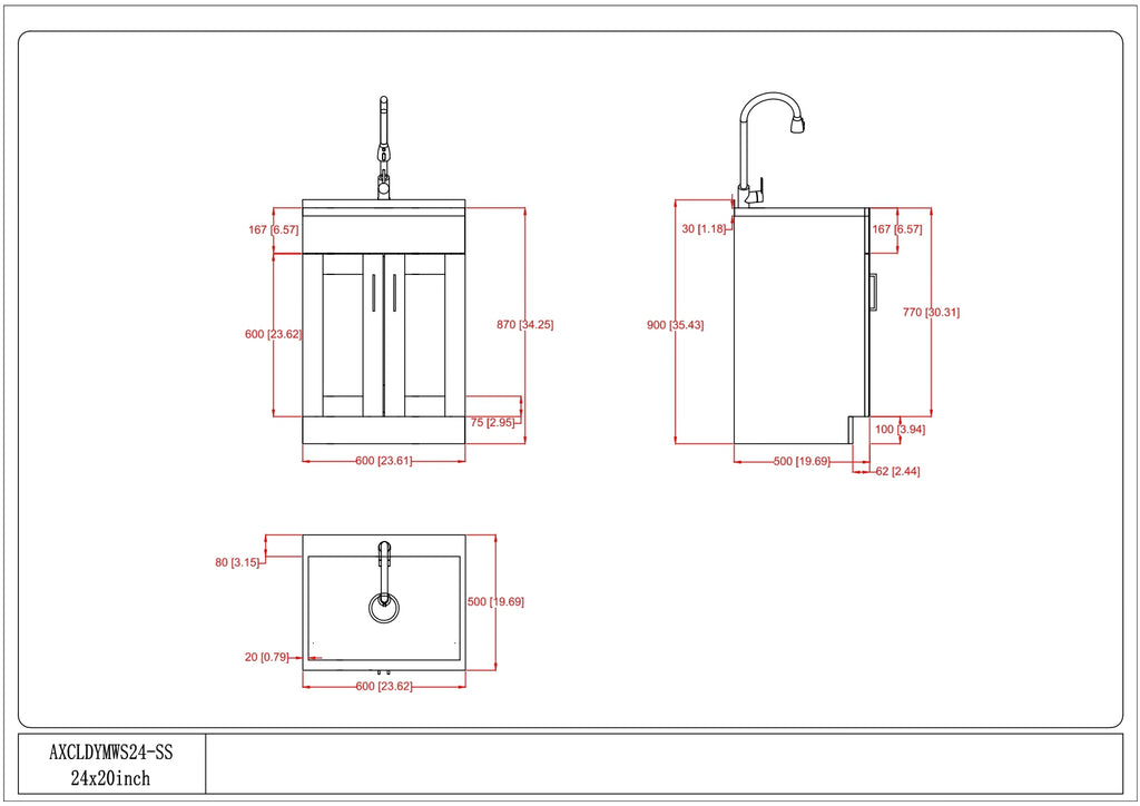 - DIMENSIONS: Cabinet 24' W 34' H x 19.7' D Sink Depth: 10 inches