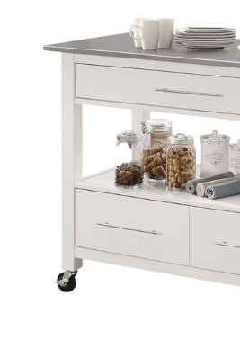 - KD, Kitchen Cart•3 Drawer, Open Storage: 1 Shelf, Size: 37' x 20' x 11'H, Stainless Steel Top, 43' x 22' (1100 x 550mm), Caster Wheels (2 with Lock), Drawer Size Large 36' x 14' x 3'H, Small 17' x 14' x 7'H, Glide Side Metal (3/4 Ext.), DT Not Included, Felt-Lined Not Included, Safety Stop Included