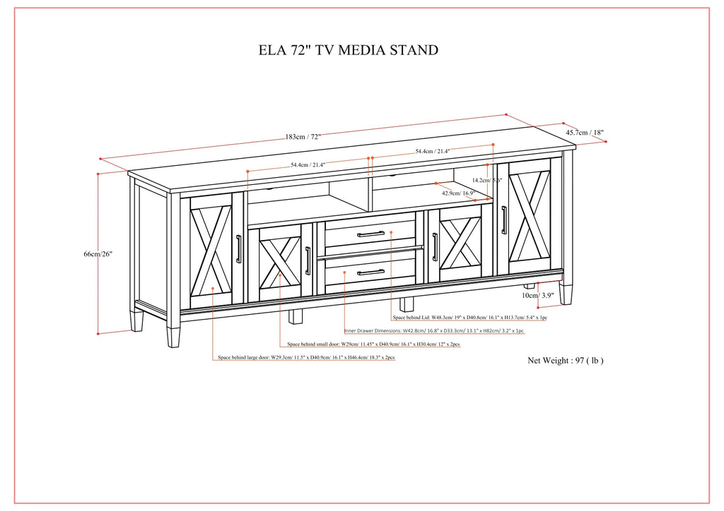 - Extra wide TV Stand is perfect for TVs up to 80 inches, includes cord management cut-outs for easy installation of TV and media components.
