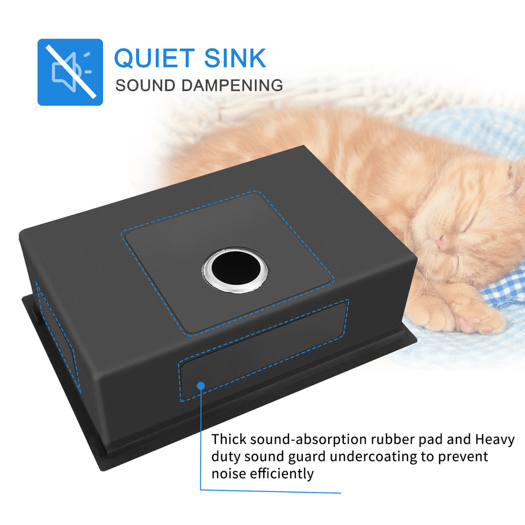 - Multiple practical functions: the undermount single bowl kitchen sink with X grooves water guide line on bottom which is faster to remove water. X-shape flow line to avoid clogging. Heavy duty sound guard undercoating and thick rubber padding to minimize noise