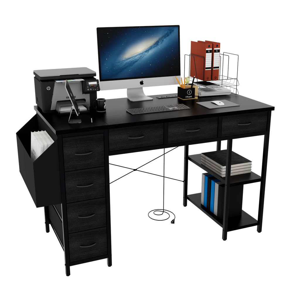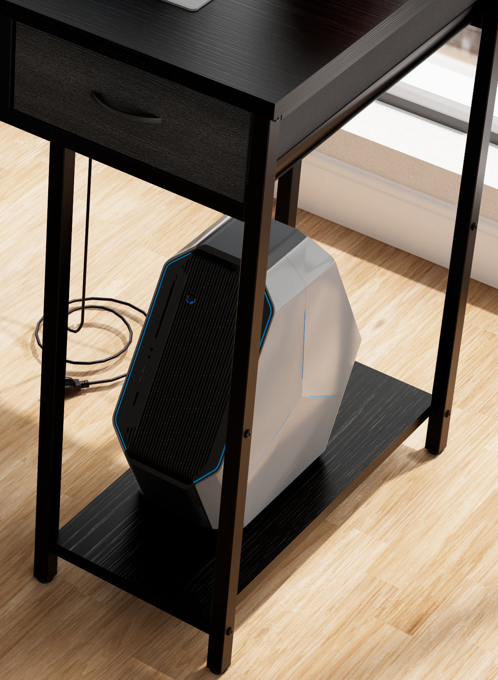 - 【Adjustable and Reversible Computer Desk】 The cabinet with drawers and side pocket can be installed on the left or right side based on your preferences. The movable CPU stand and shelf allow for easy placement of your computer and printer, keeping your desktop tidy and providing ample workspace.