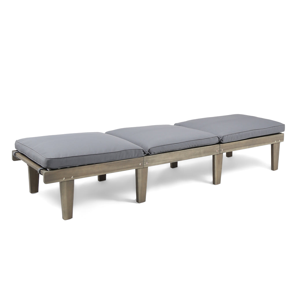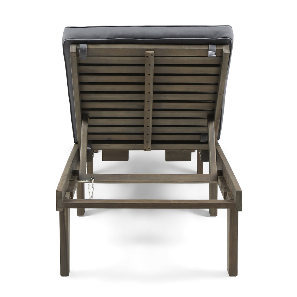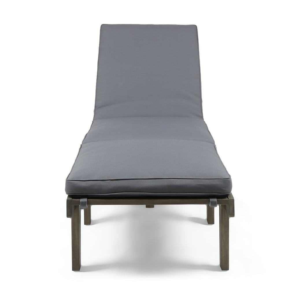 - Includes: one (1) chaise lounge. Material: Acacia wood. Cushion material: Water resistant cushions. Composition: 100% polyester