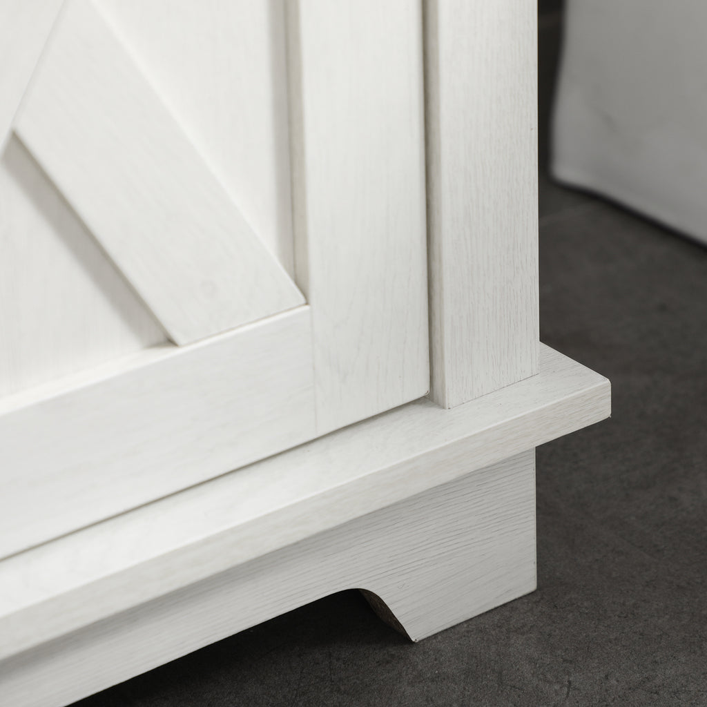 - Farmhouse Style: This modern farmhouse decor offers a smooth and contemporary look with X-shaped imprints on the front doors and minimalistic oval handles, creating a simple and clean display that's easy to match.