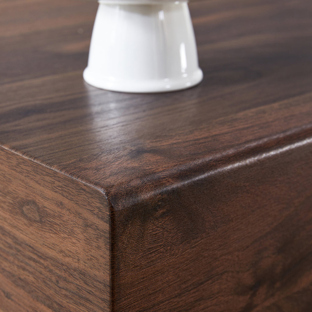 - Walnut Colored Texture Sticker: The coffee table is made of MDF material with a walnut colored texture sticker, bringing a natural and warm wooden appearance.MDF Support Legs: Sturdy MDF support legs match the table top material and create a cohesive style.