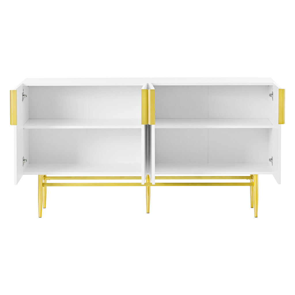 Elegant White Sideboard Buffet Cabinet with Gold Handles