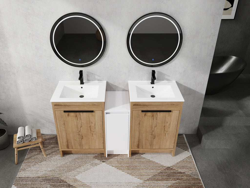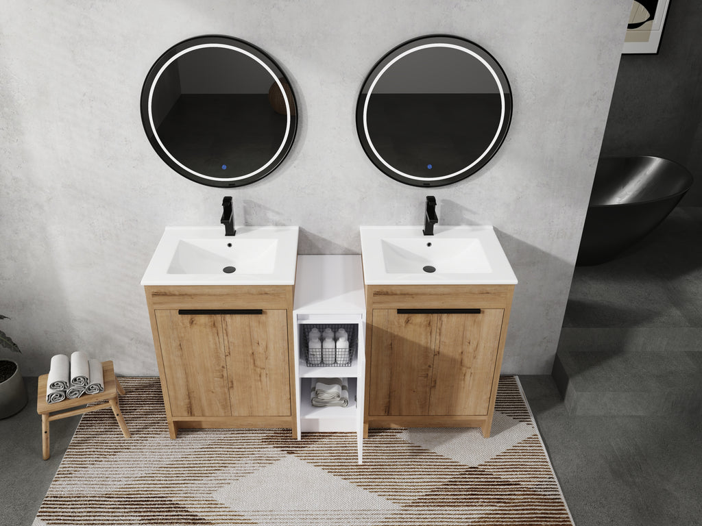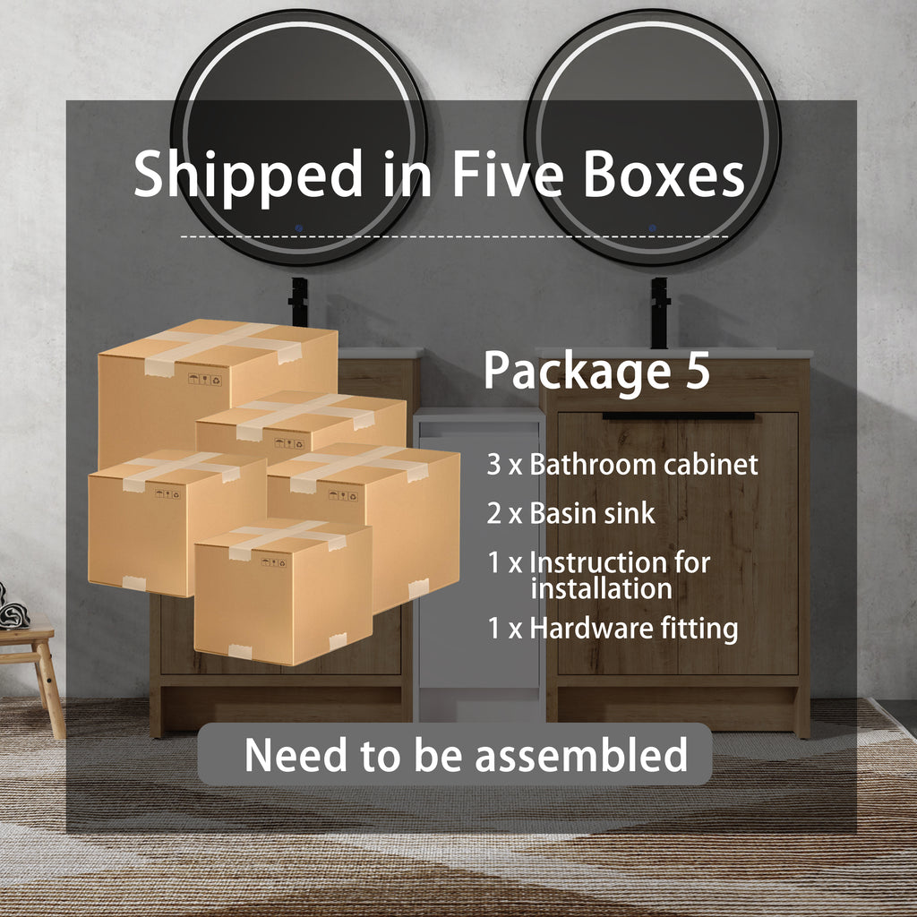 | Package includes | -2x Vanity Cabinet; -2x Ceramic Basin; -1x Storage Cabinets; -4x Metal Handle; Parts Package |