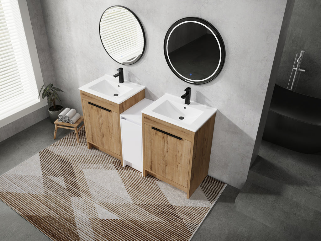 - Bring luxury to your bathroom with our contemporary bathroom vanity. Store all your essentials with ease in the ample bottom storage.