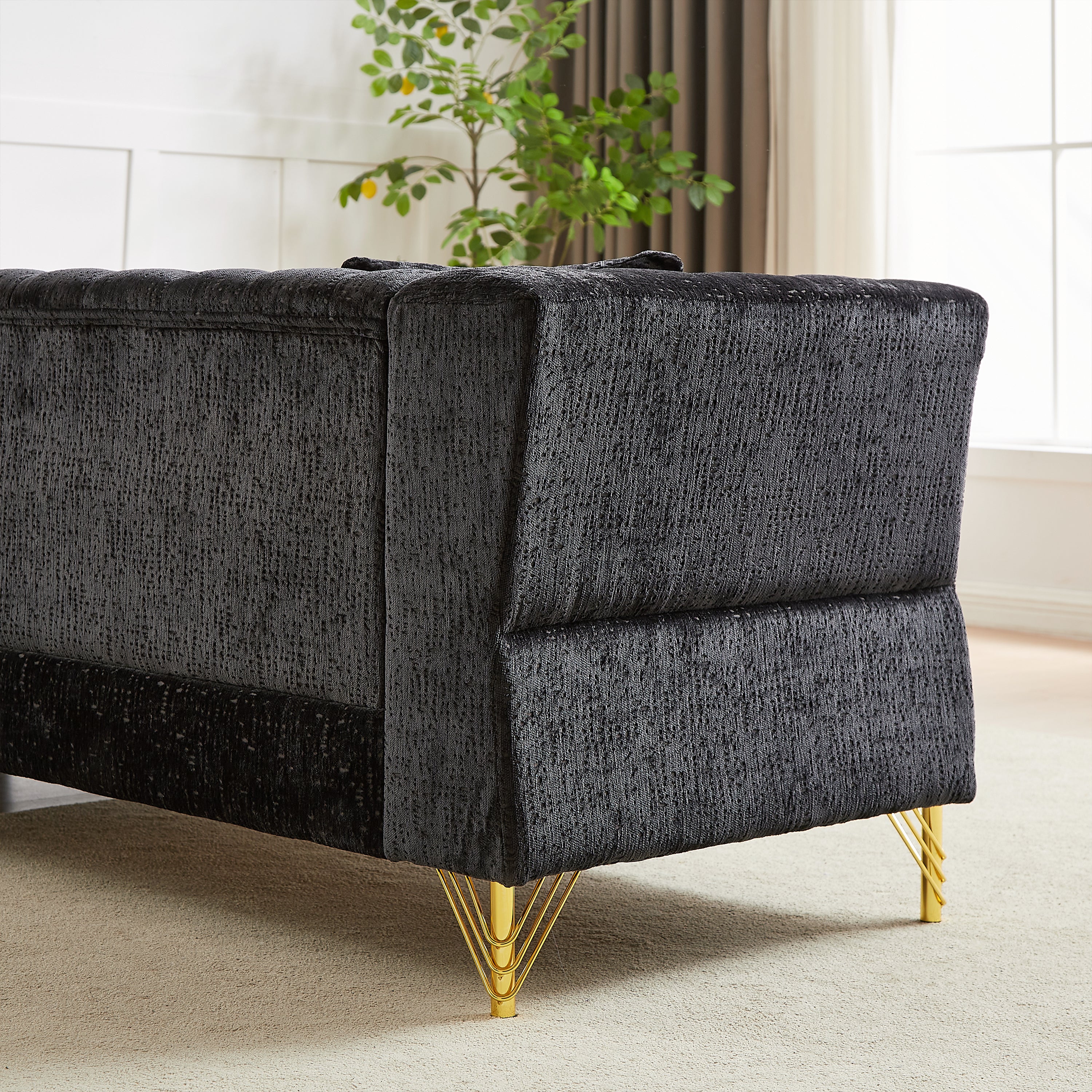 - ✔ Sturdy and durable. The sofa's frame is made of solid wood for added sturdiness and durability. With comfortable foam, soft cushions supported by a curved spring structure, metal legs for years of use, and tufted buttons on the back and arms, this sofa is perfect for those who want to rest after a busy day.