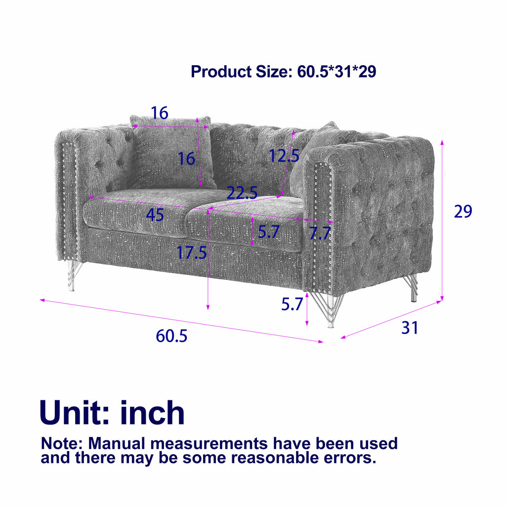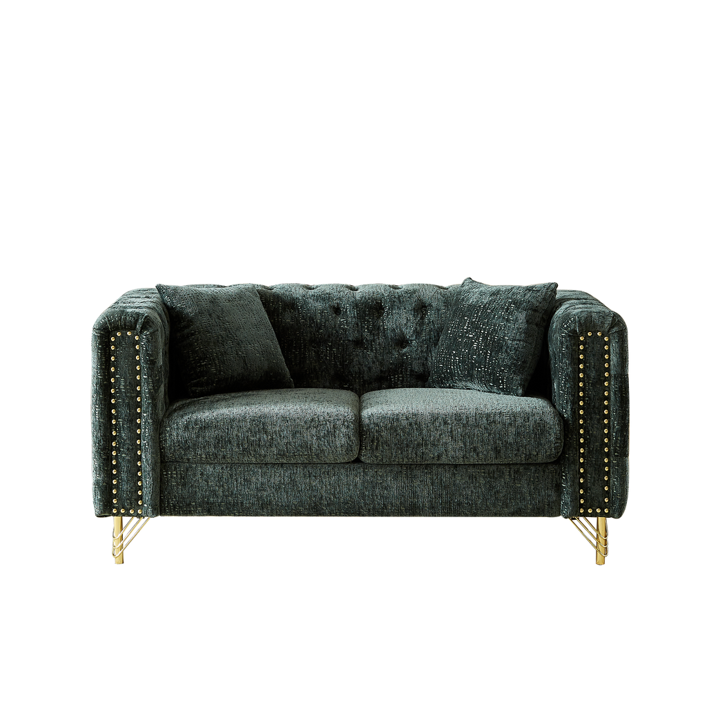 - ✔ Sturdy and durable. The sofa's frame is made of solid wood for added sturdiness and durability. With comfortable foam, soft cushions supported by a curved spring structure, metal legs for years of use, and tufted buttons on the back and arms, this sofa is perfect for those who want to rest after a busy day.
