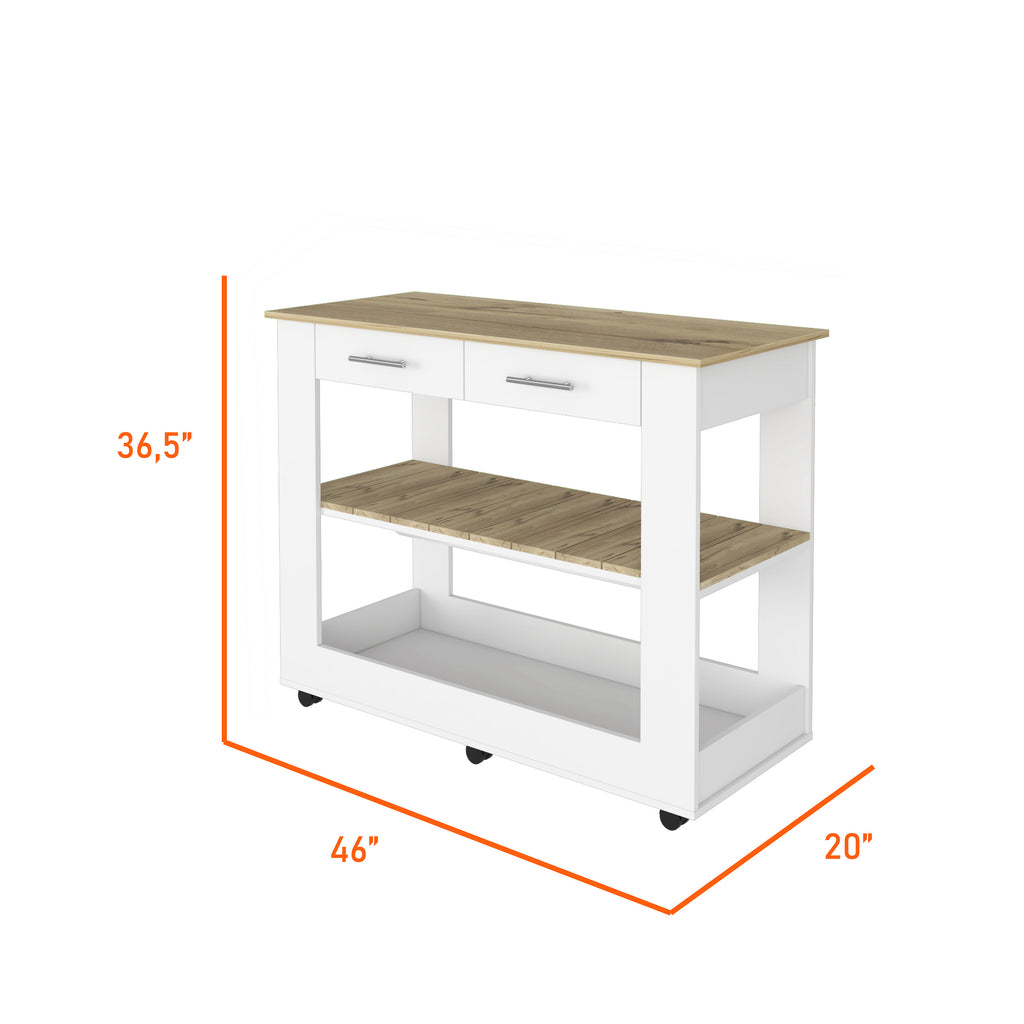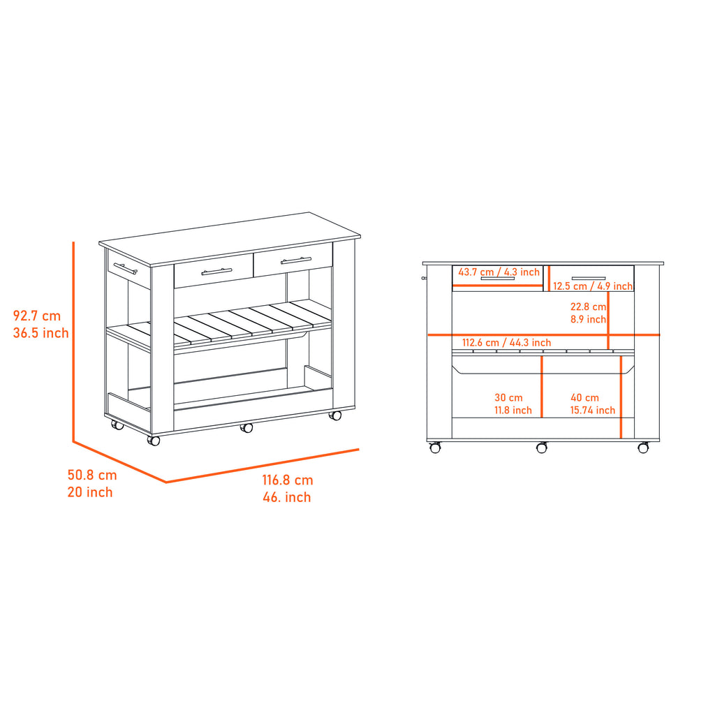 Brooklyn 46 Kitchen Island, Two Shelves, Two Drawers