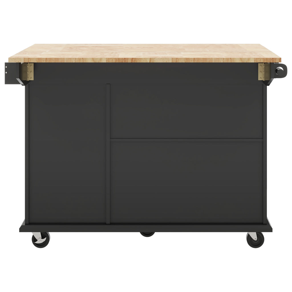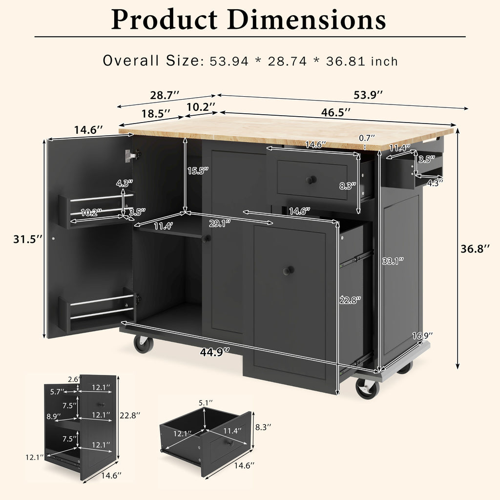- [Drop Leaf Wood Top] The kitchen island cart features a drop leaf rubber wood top, serving as an astute and effective solution for compact kitchens or dining areas. The drop leaf table facilitates effortless folding when not in use, thereby optimizing the utilization of available space.
