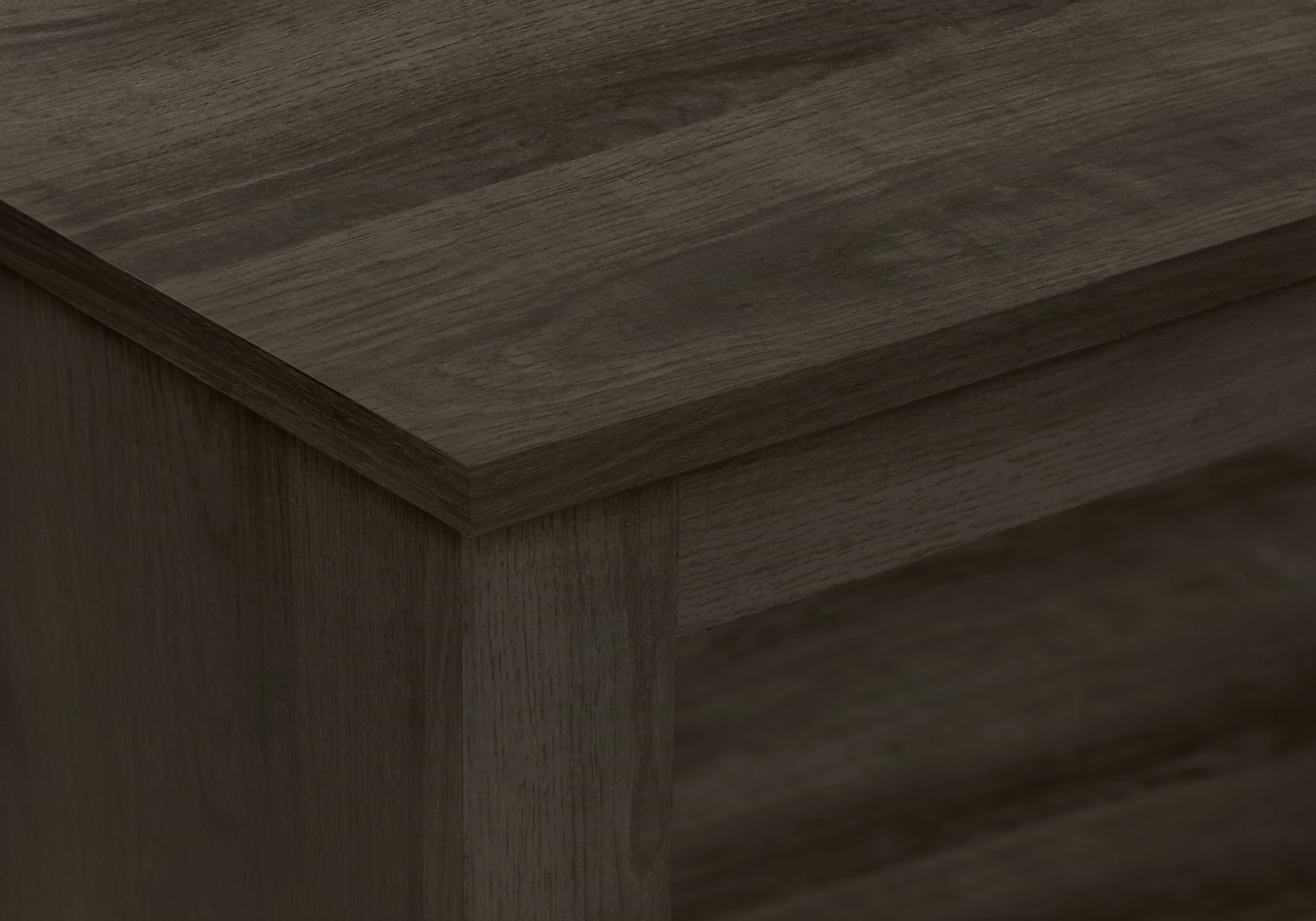 - Brown Oak finish on all sides, this wood look TV console can be placed against the wall or in the corner to save space