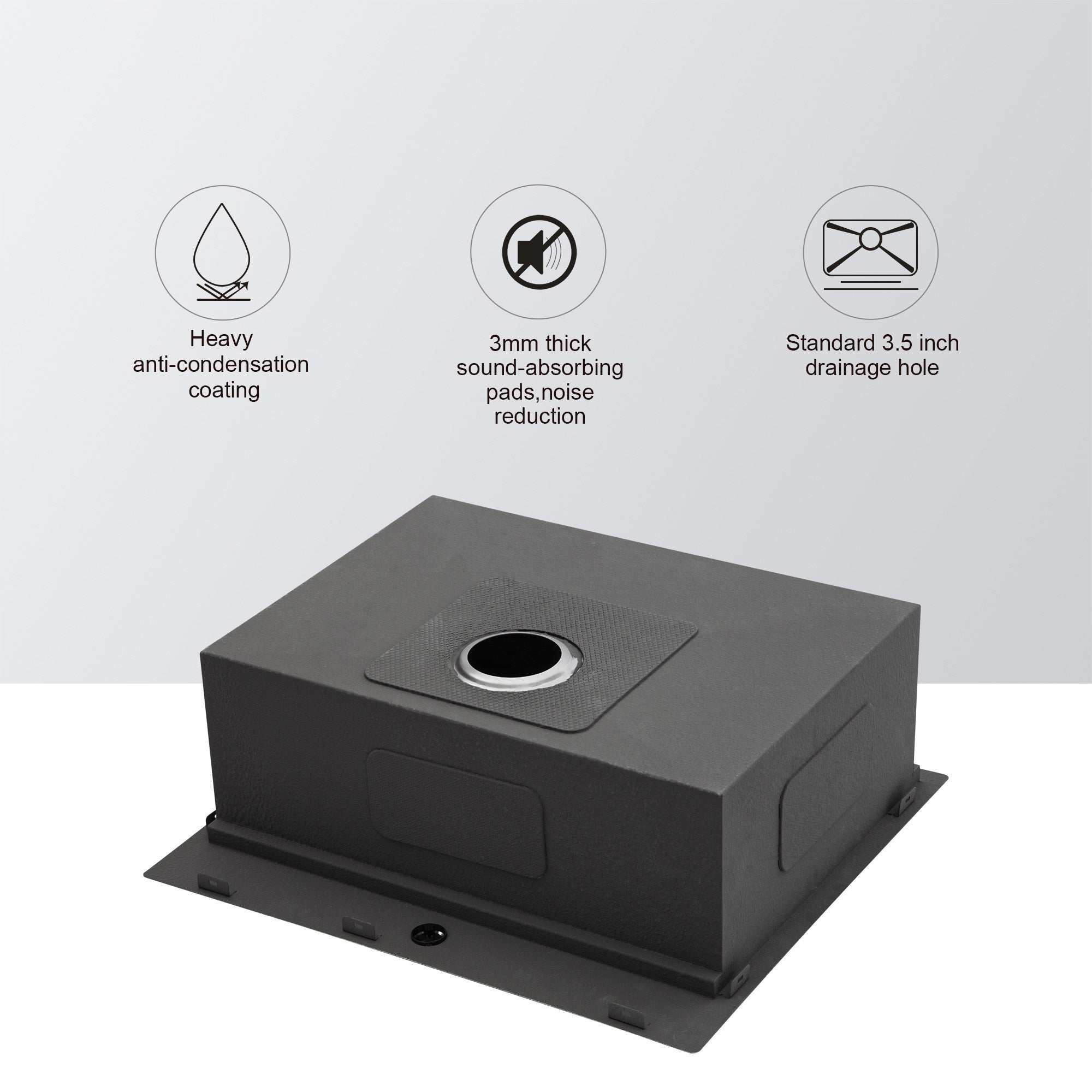 - Our kitchen sinks are made of real 304 stainless steel. Good raw materials determine the quality of the sink. This elegant kitchen sink is equipped with thick rubber dampening pads and a protective coating that reduces condensation and dampens sound.Choose it, choose a better life.