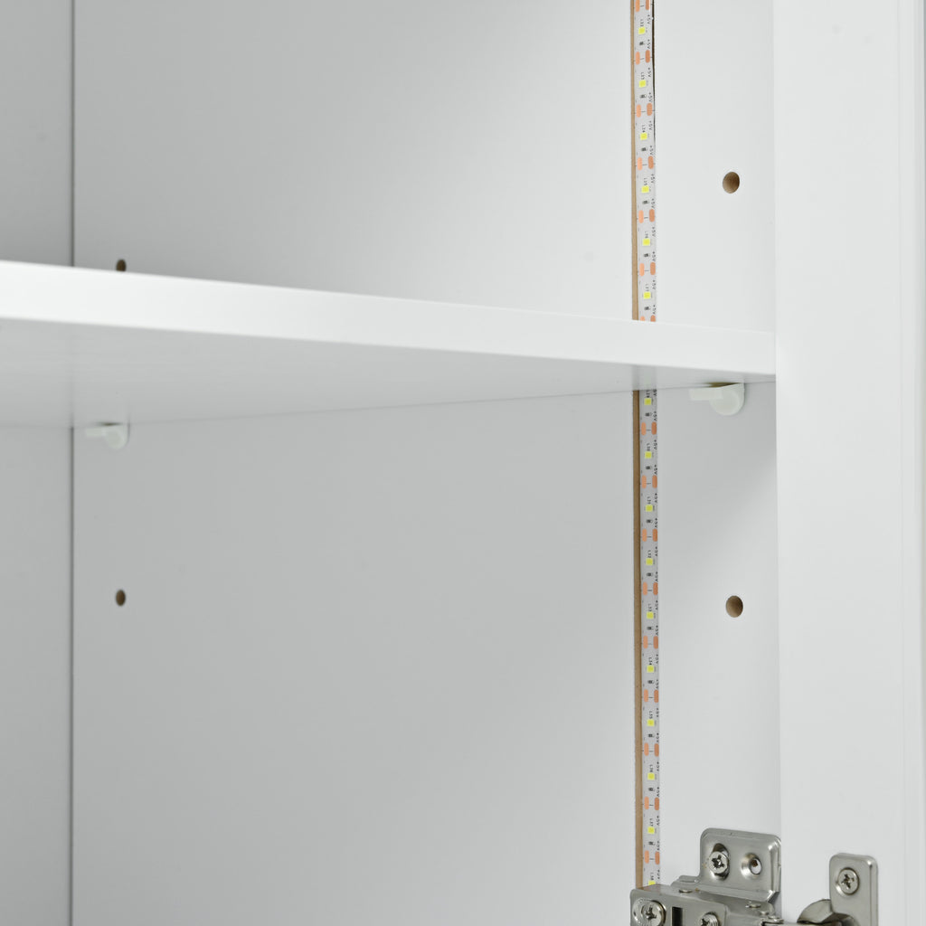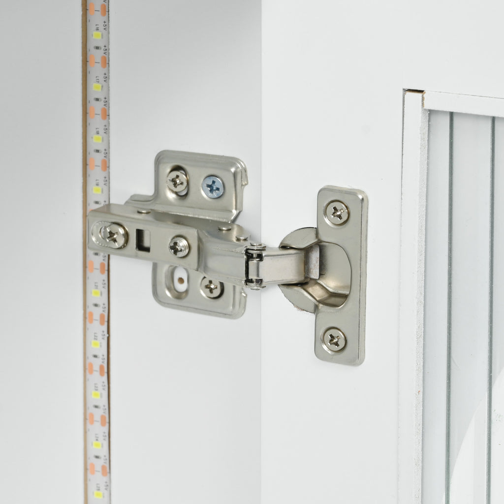 - [Fluted Glass Door & LED Light] Our kitchen island on wheels boasts two exquisitely crafted fluted glass doors, which not only refract light but also create a captivating misty effect. The incorporation of sleek white LED lights within the foggy surface adds an enchanting aesthetic touch, elevating the overall allure of your kitchen space. Furthermore, you have complete control over the LED switch through the power outlet.