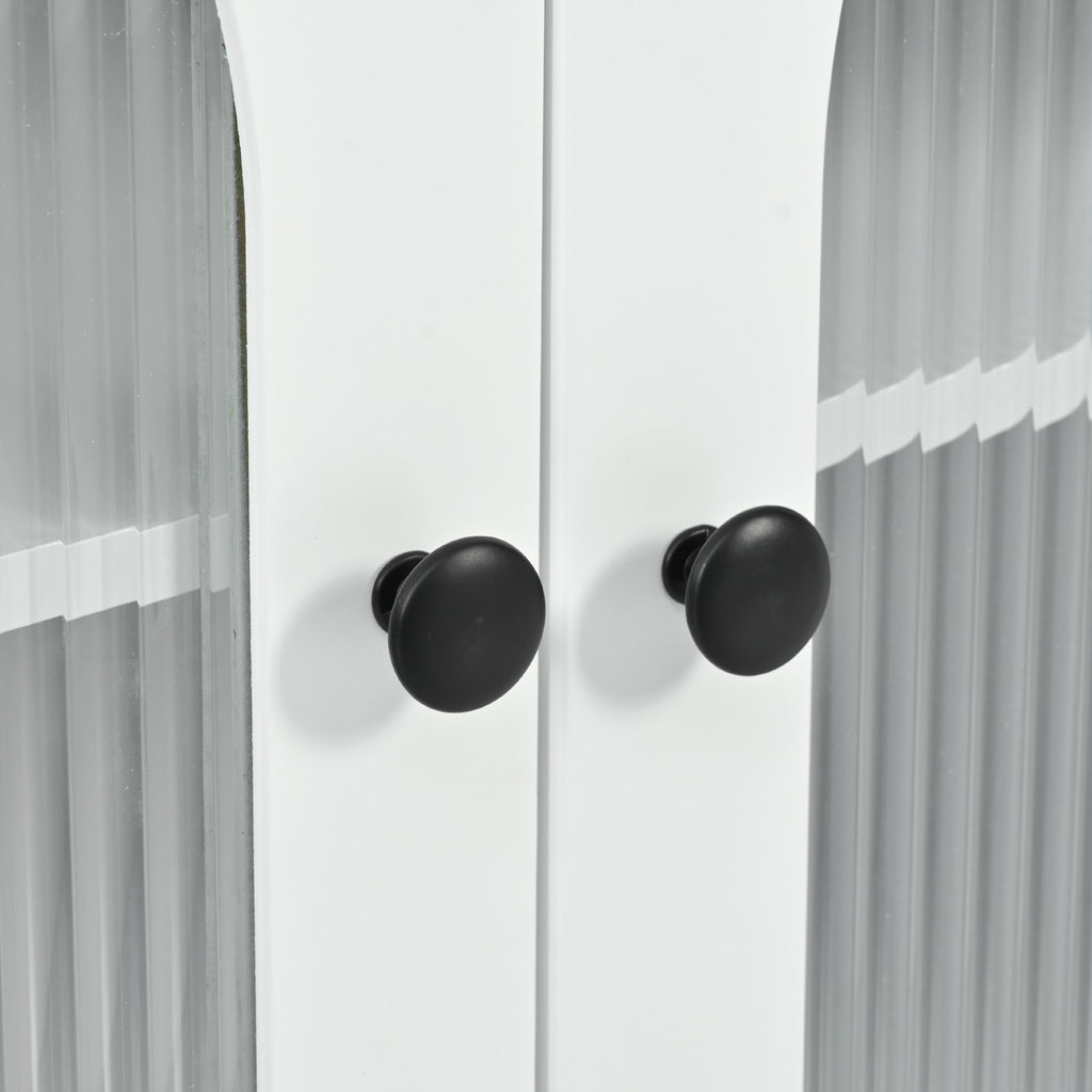 kitchen island boasts two exquisitely crafted fluted glass doors, which not only refract light but also create a captivating misty effect. The incorporation of sleek white LED lights within the foggy surface adds an enchanting aesthetic touch, elevating the overall allure of your kitchen space.