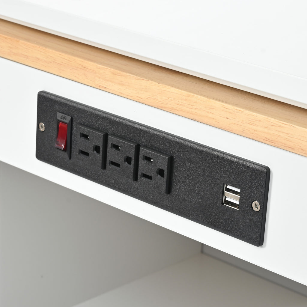 Designed with practicality in mind, our modern rolling kitchen island boasts the convenience of 2 USB ports and 2-hole sockets. Effortlessly charge your coffee maker, ice maker, and phones, while indulging in your favorite beverages.