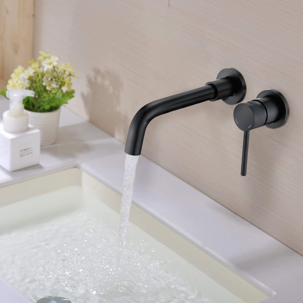 - The wall mount bathroom faucet boasts contemporary, curved edges for an appealing, yet substantial style that brings a sleek feeling to the bathroom.