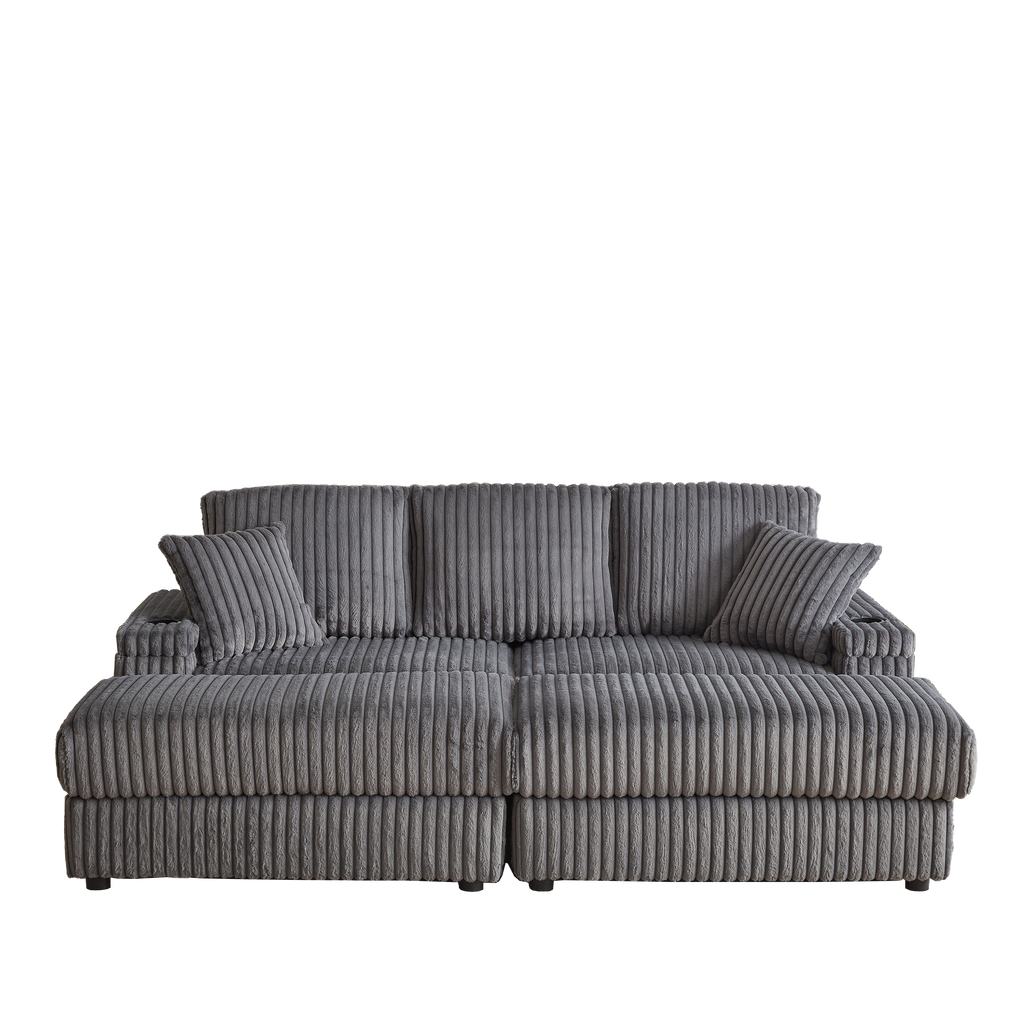 - Upholstered with soft corduroy in a neutral hue for an inviting look, this set will provide you with unrivaled comfort. High resilience sponge cushioning reinforced with spring package will support your body when seated, and easily restore their shape