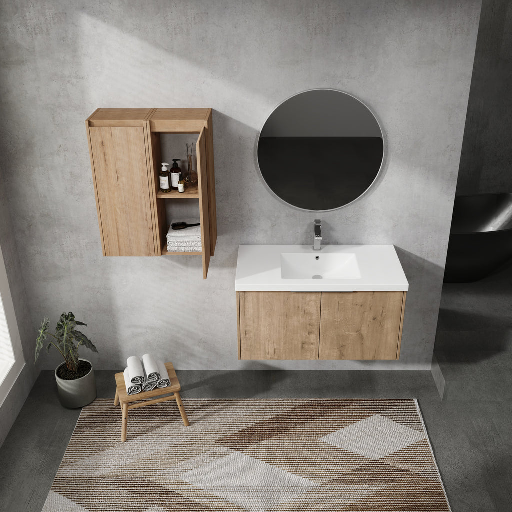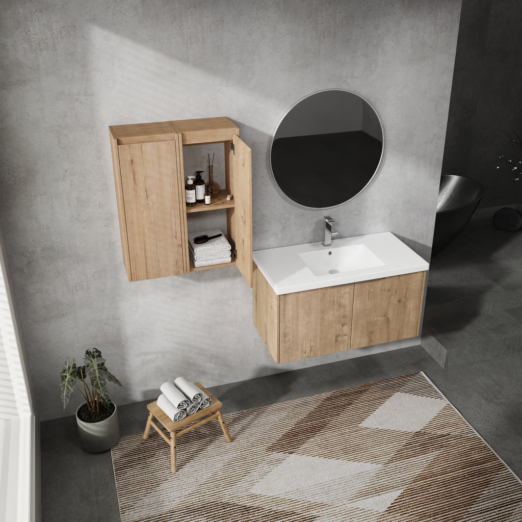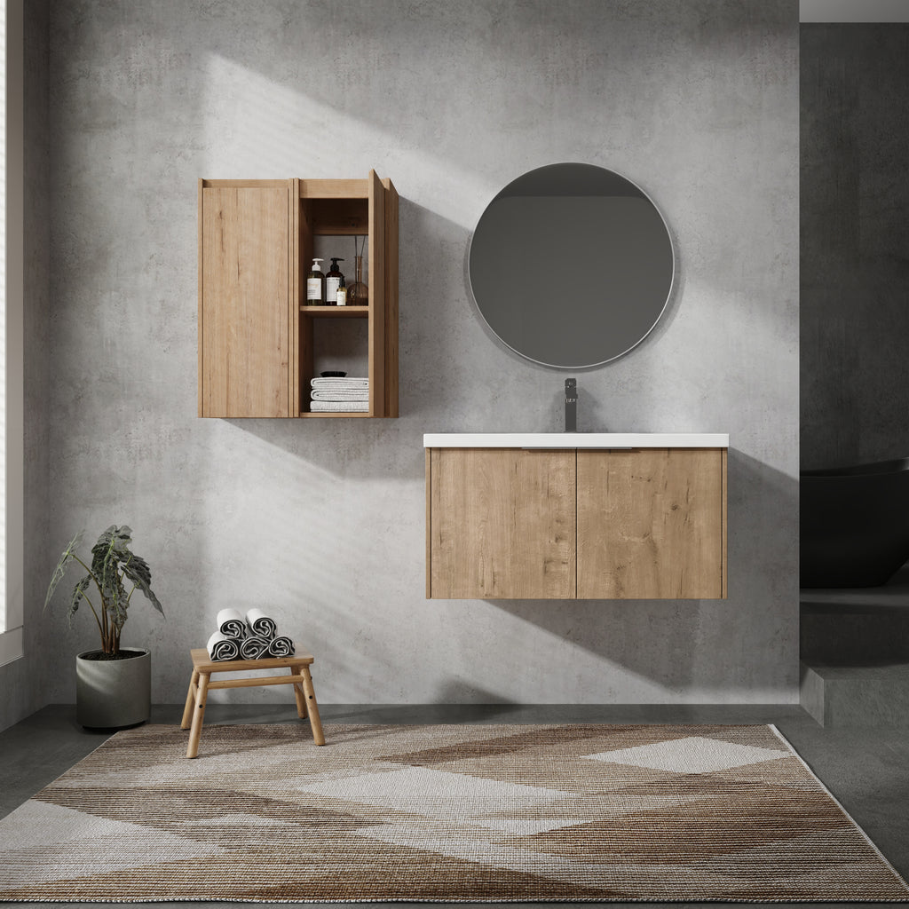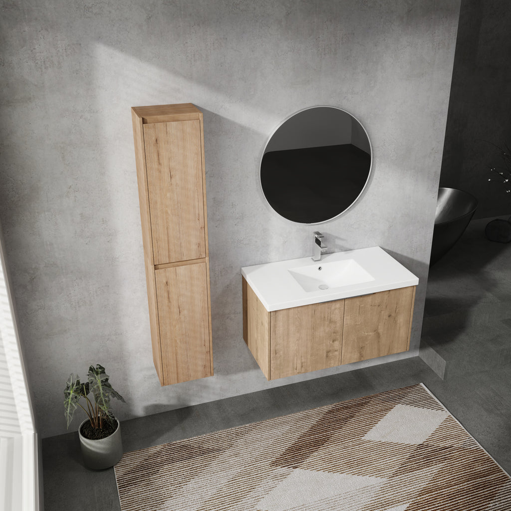 Vanity and side cabinet is made of high quality plywood that surface material used 'Scratch & Water-Resistant' melamine, which is designed to not only withstand threats of moisture and humidity but also easy to clean and maintain.