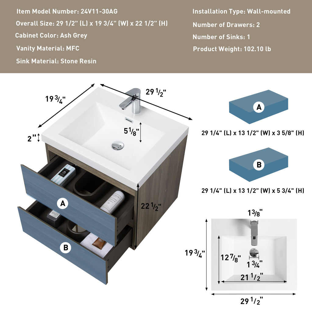 Floating Bathroom Vanity with Sink (24V11-30AG)