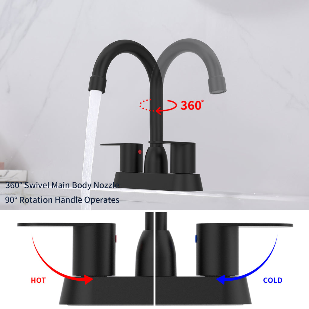 - Rotatable bathroom faucets for sink—— Ergonomically designed hot and cold dual Handles. Handle operates with a 90°forward rotation. The independent design of the dual handles facilitates precise control of the water temperature and flow. 360 degree swivel main body nozzle full range of washing for your bathroom sink.