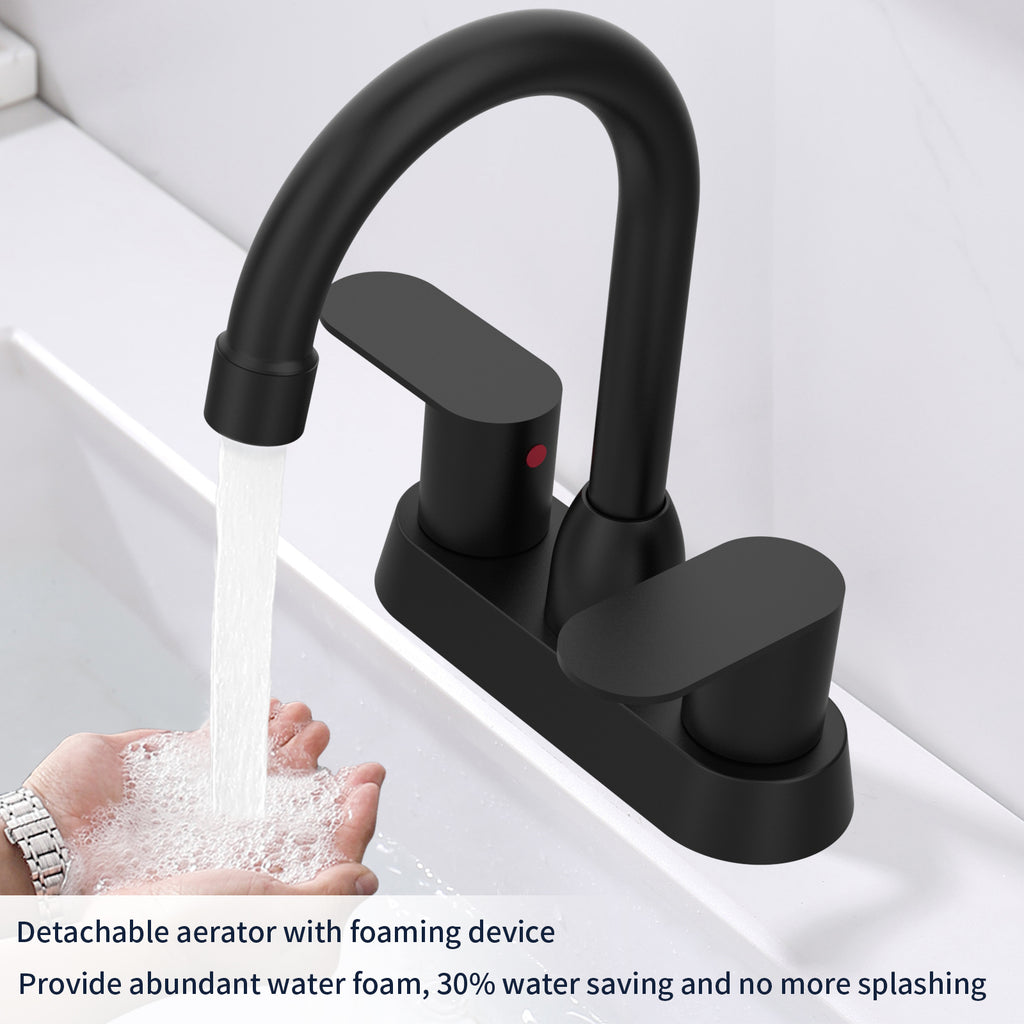 - SAVES 20% WATER: The bathroom faucet for 3 hole is equipped with the built in aerator which is dense and soft without any splashing when flowing the water. The advance aerator can save 40% water consumption.Bathroom sink faucet Flow rate:1.2gpf 4.46L/min. have registered with the California Energy Commission.