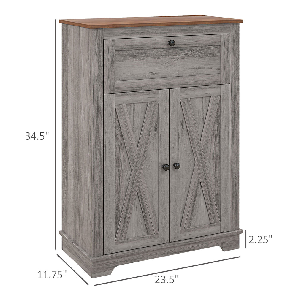 - Farmhouse Style: Featuring a dark gray woodgrain pattern, vintage handles, and an X-brace on the doors, this side cabinet adds a farmhouse style that matches any home decor.
