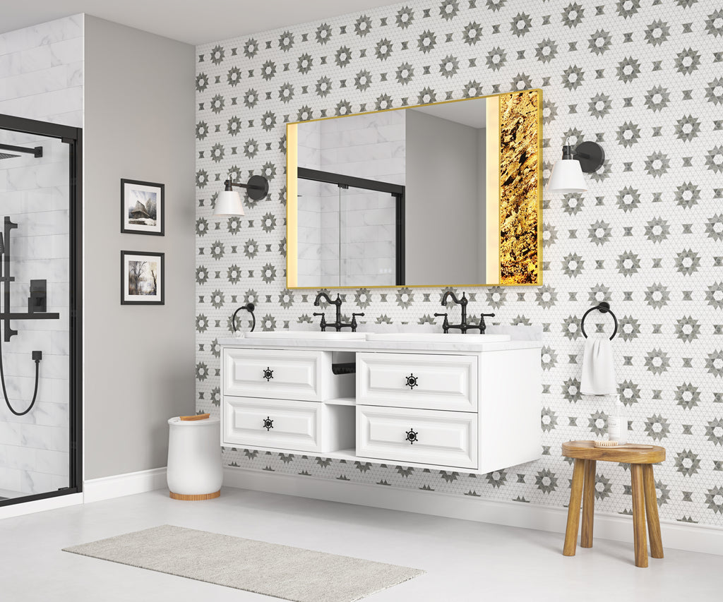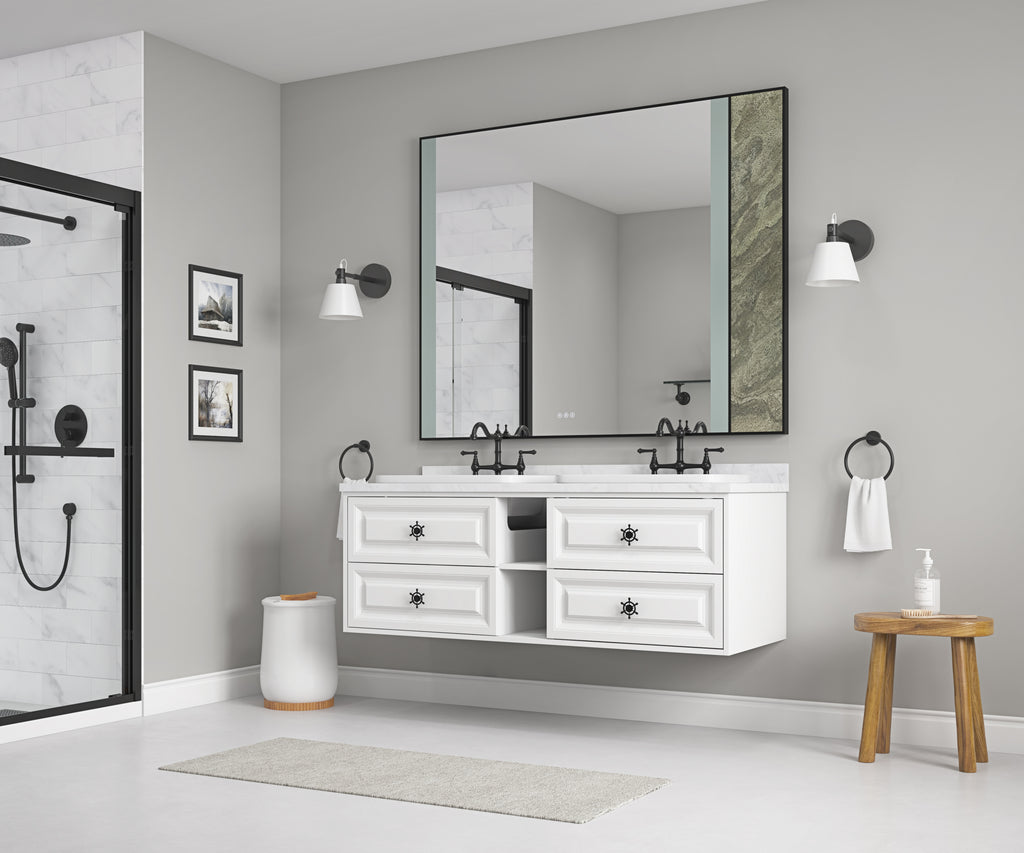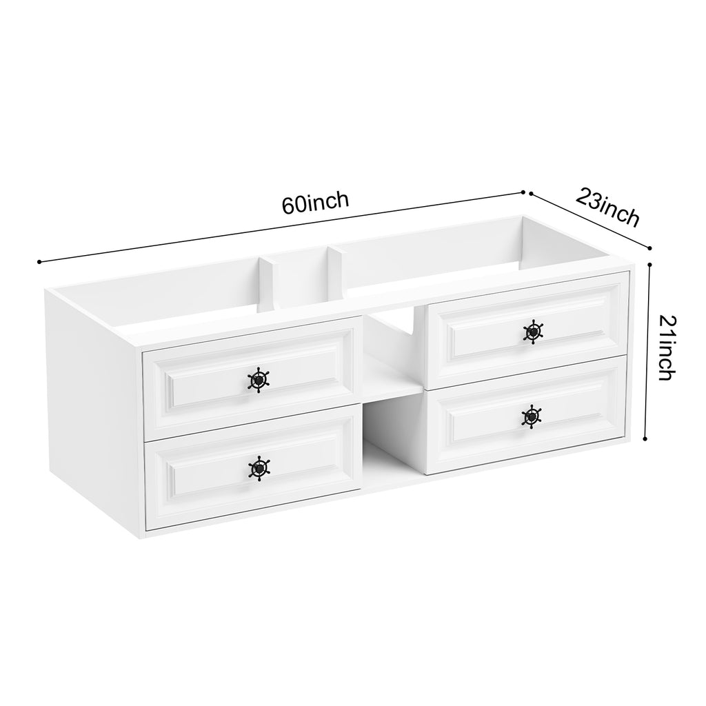 - Includes - Bathroom vanity base cabinet and hardware only. Countertop, sink, faucet or mirror are not included.