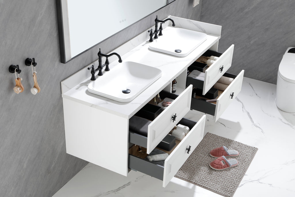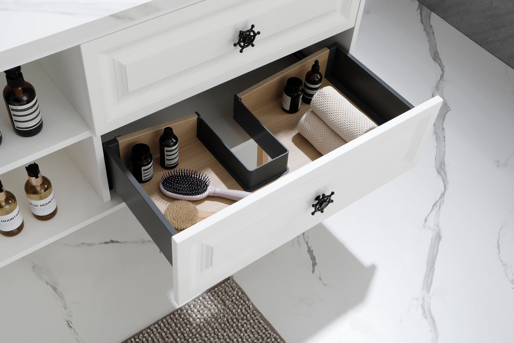 - Bathroom vanity cabinet is made of high-quality materials to ensure durability and reliability. The soft-closing drawers provide a quiet and seamless user experience, enhancing your daily comfort.