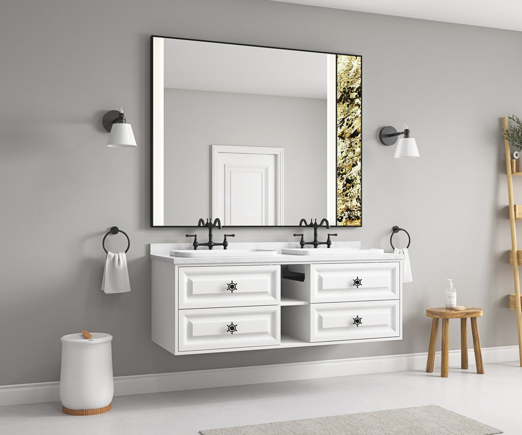 - Wall mounted bathroom vanity cabinet effectively solves the problem of space occupation, frees up floor space, maximizes the use of bathroom space and facilitates floor cleaning.