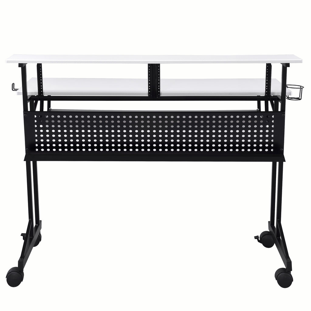 - Supported by a metal open frame, the stand offers robust stability and durability while maintaining a lightweight and modern aesthetic that complements various studio or home decor styles