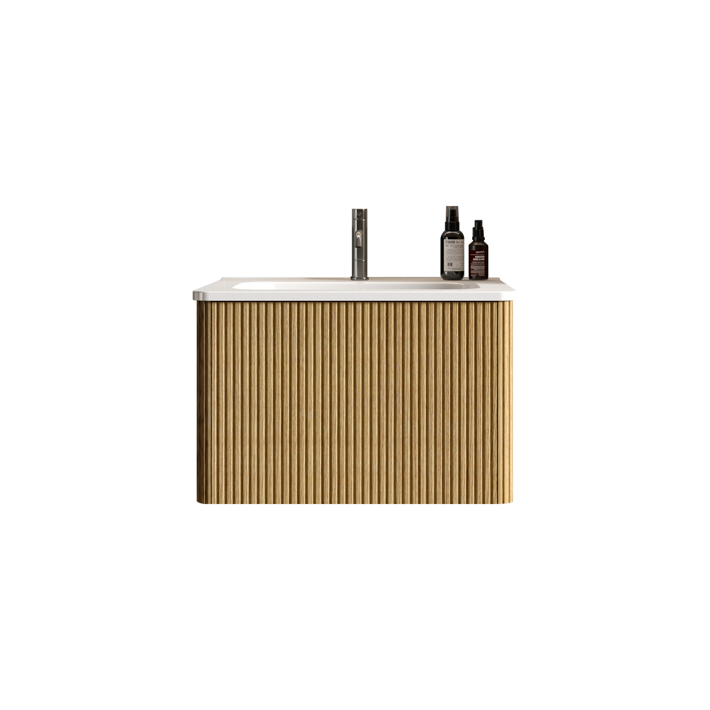 Fashionable Striped Natural Oak Texture Look: Etna boasts a trendy striped walnut texture finish, adding a touch of sophistication to your bathroom decor. The rich wood grain pattern elevates the vanity's aesthetic, making it a standout piece in any bathroom setting.