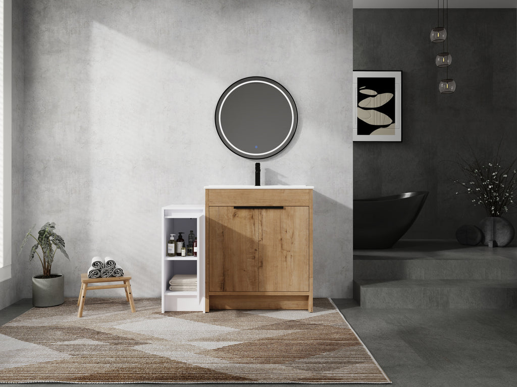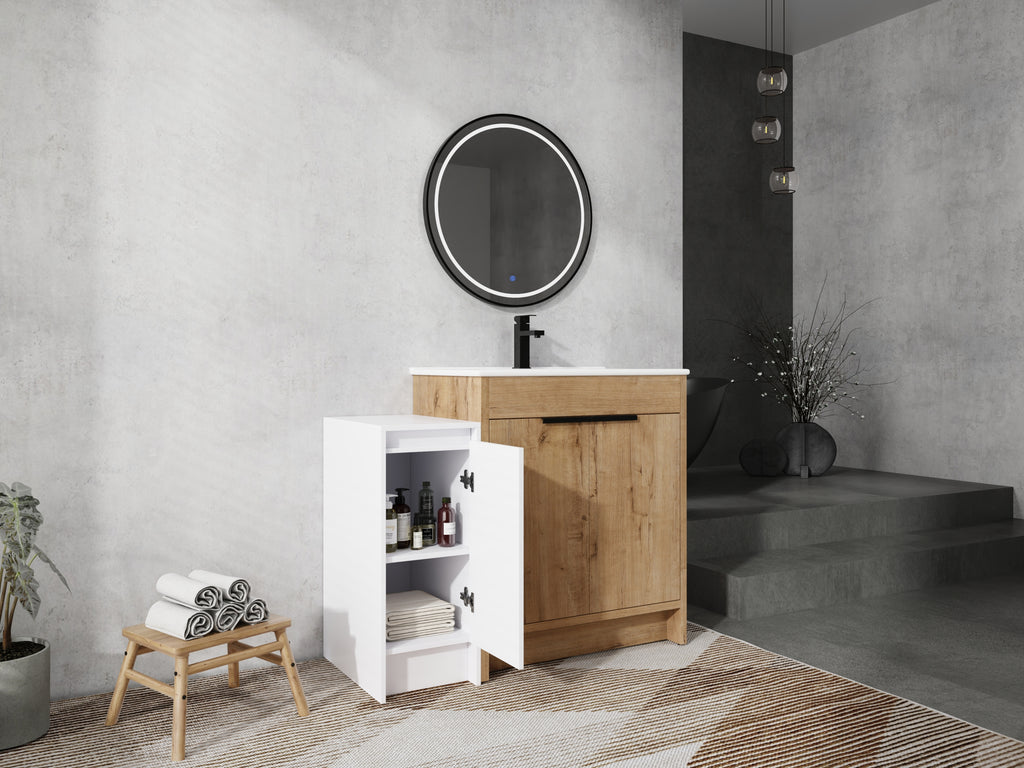 - Bring luxury to your bathroom with our contemporary bathroom vanity. Store all your essentials with ease in the ample bottom storage.
