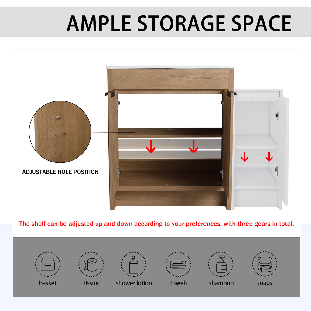 | Package includes | -1x Vanity Cabinet; -1x Ceramic Basin; -1x Storage Cabinets; -2x Metal Handle; Parts Package |