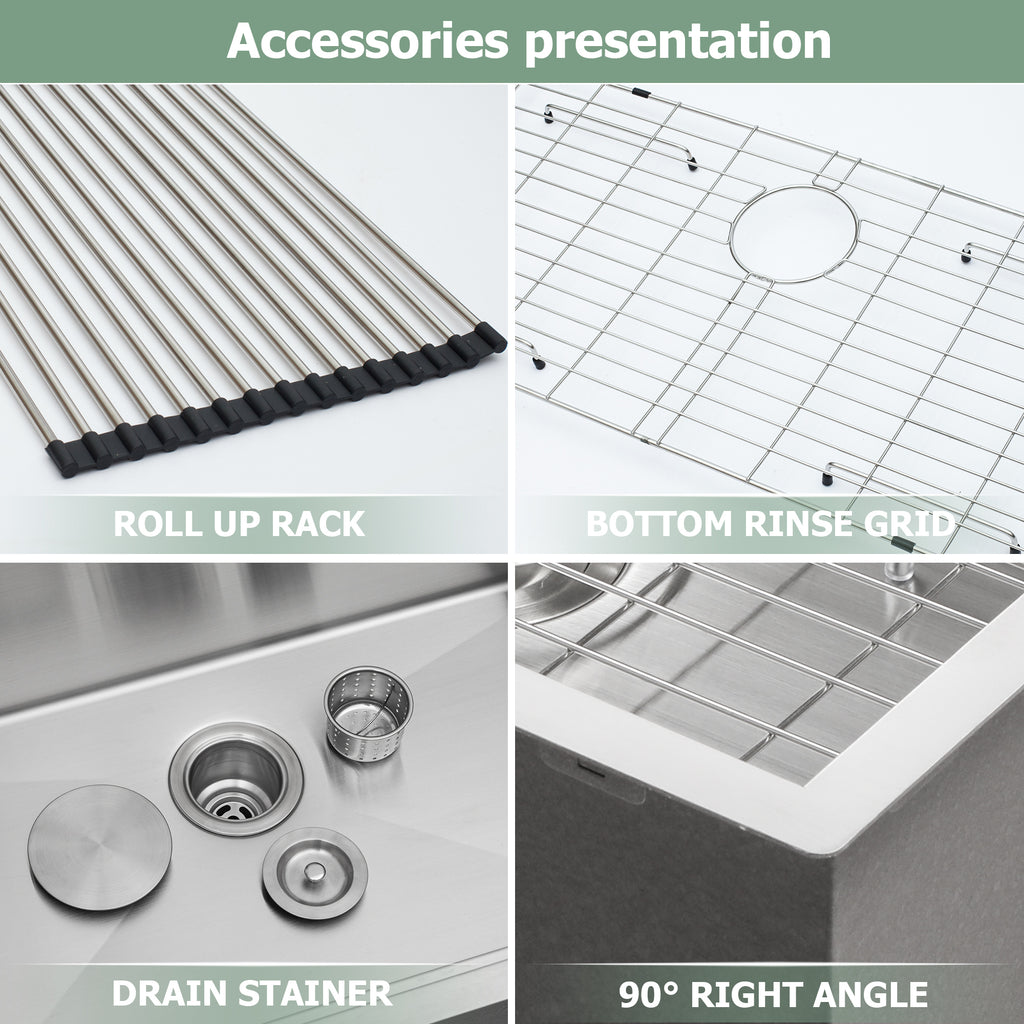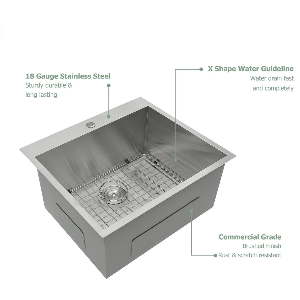 - The drop in kitchen sink is constructed of dent-resistant T304 stainless steel in 18-gauge for superior strength and durability.Comercial grade brushed satin finish, easy to clean and long-lasting.