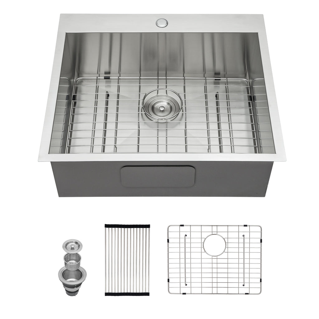 - Stainless Steel Drop-in Laundry Utility Sink Size and Package: 25' x 22' x 12' (minimum cabinet size: 28 inch). Package comes in a drop in Laundry Utility sink, drain assembly , bottom rinse grid, roll drying rack, cutout template, mounting hardware and Installation Instruction.