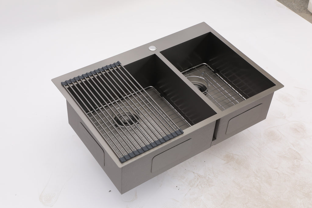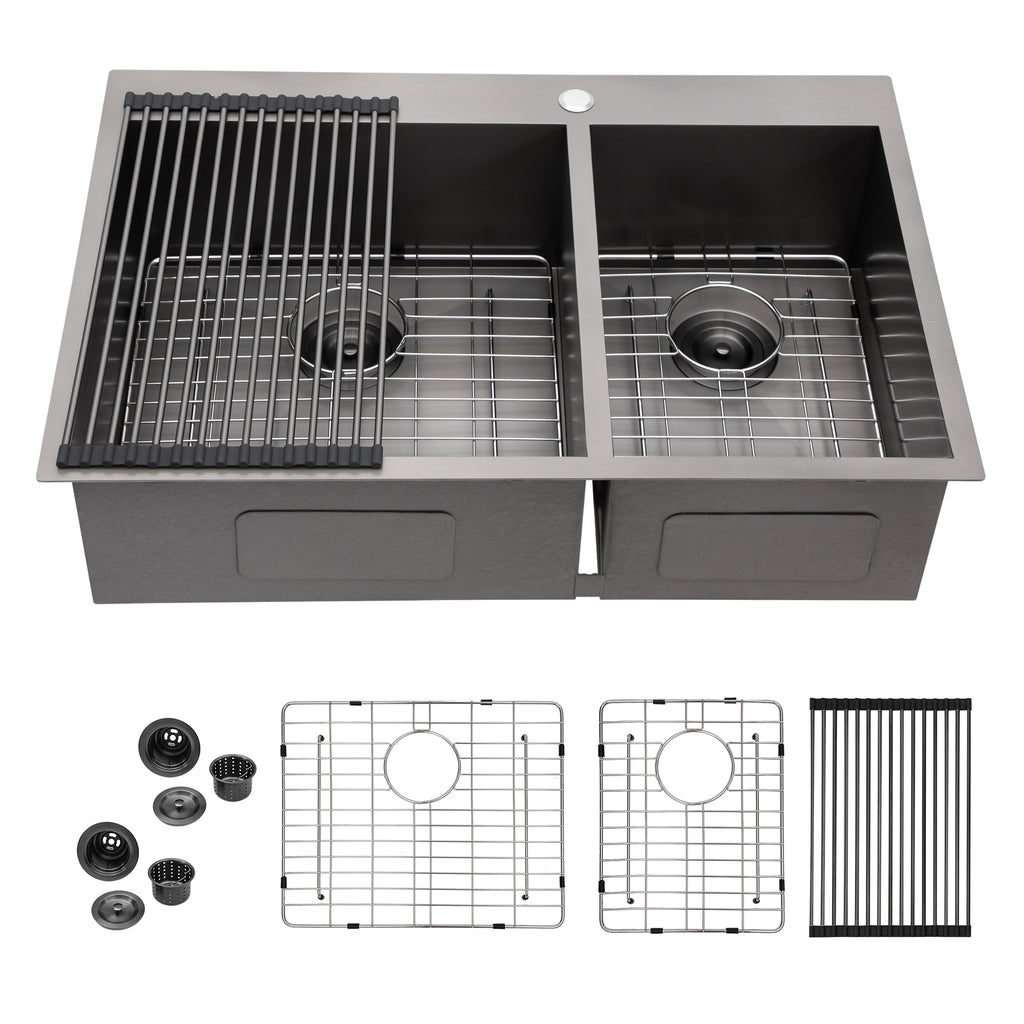 - [Package Includes] Package comes in this kitchen sink:2 x 304 stainless steel dish grid, 2 x drain assembly, 1 x drying rack,1 x installation clips, 1 x cutout template and installation Guide.