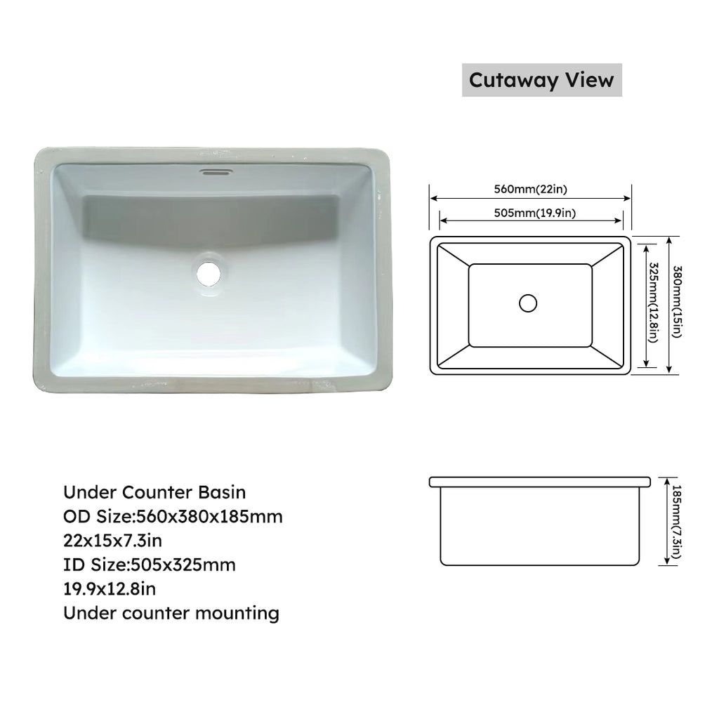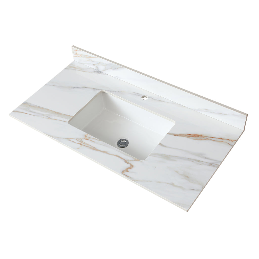 - Package Includes: vanity top with assembled rectangular ceramic sinks, 4' high backsplash. Besides, an extremely solid package - Reinforced packaging making sure a safe delivery. (Attention: Cabinet and faucet NOT INCLUDED).