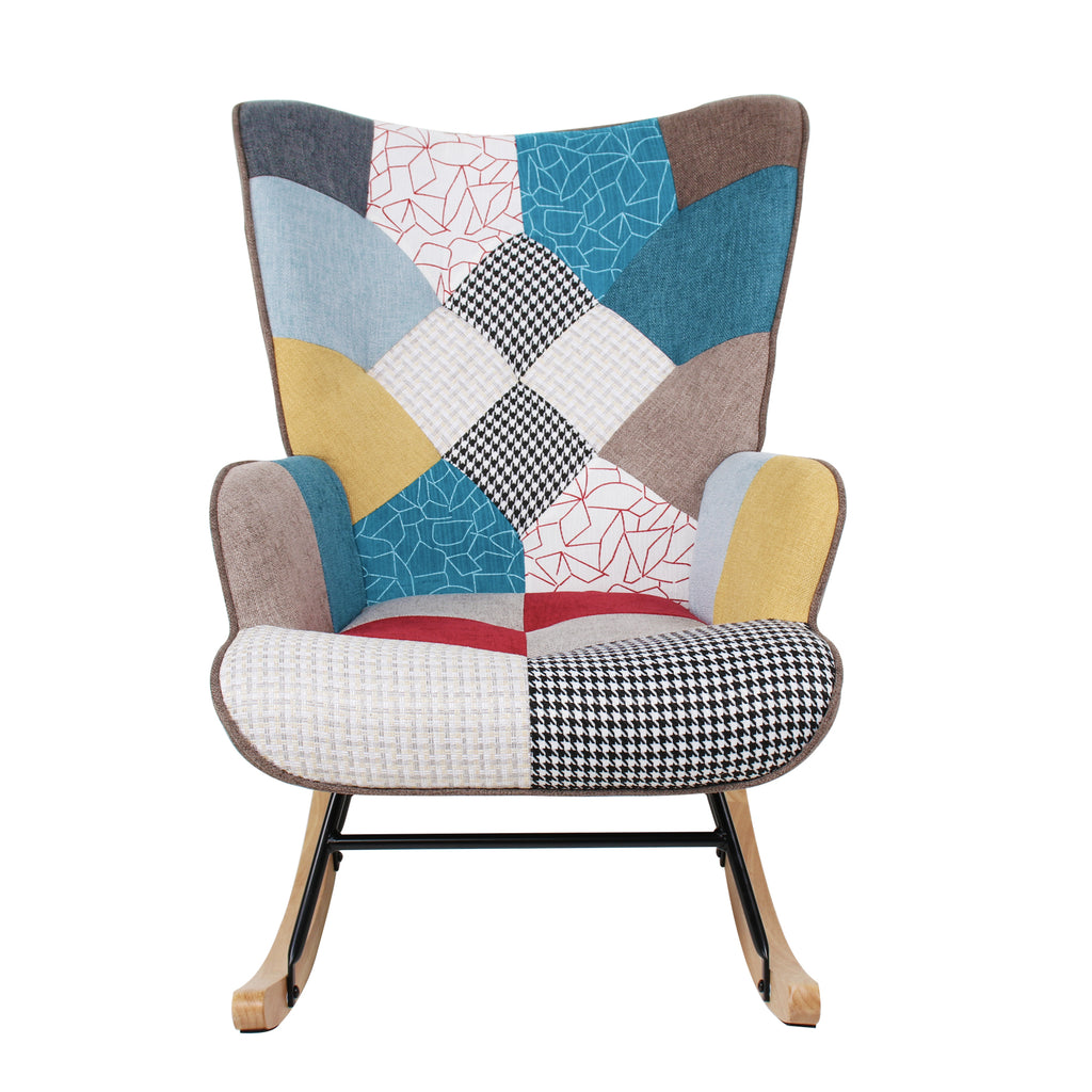 - [Splicing Design]: The colorful splicing design of the rocking chair makes it fit every scene, no matter bedroom, living room, porch or office, it can decorate all the places perfectly. Retro style reminds you of childhood that mom was sewing at home, nostalgic and warm feeling will haunt around the house long time.