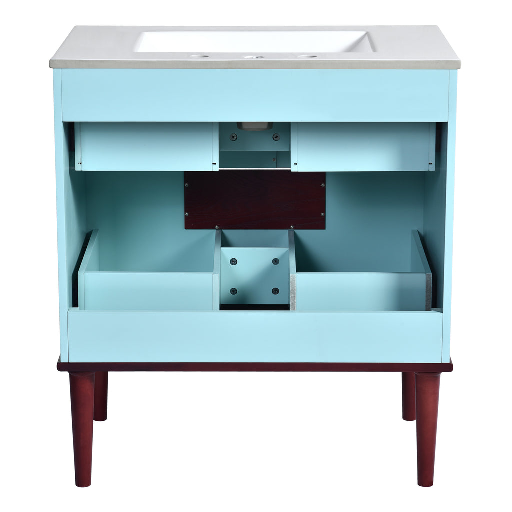 | Material | Cabinet: MDF+Solid Wood(Rubber+Poplar)/ Sink: Ceramic |