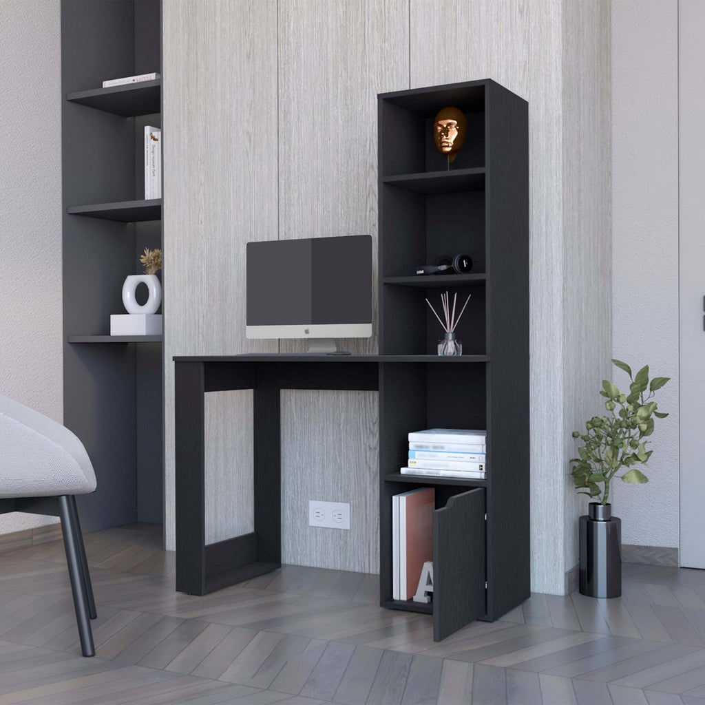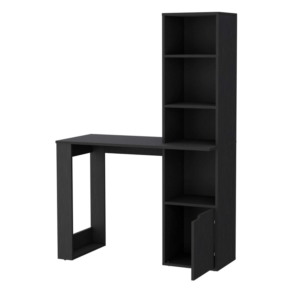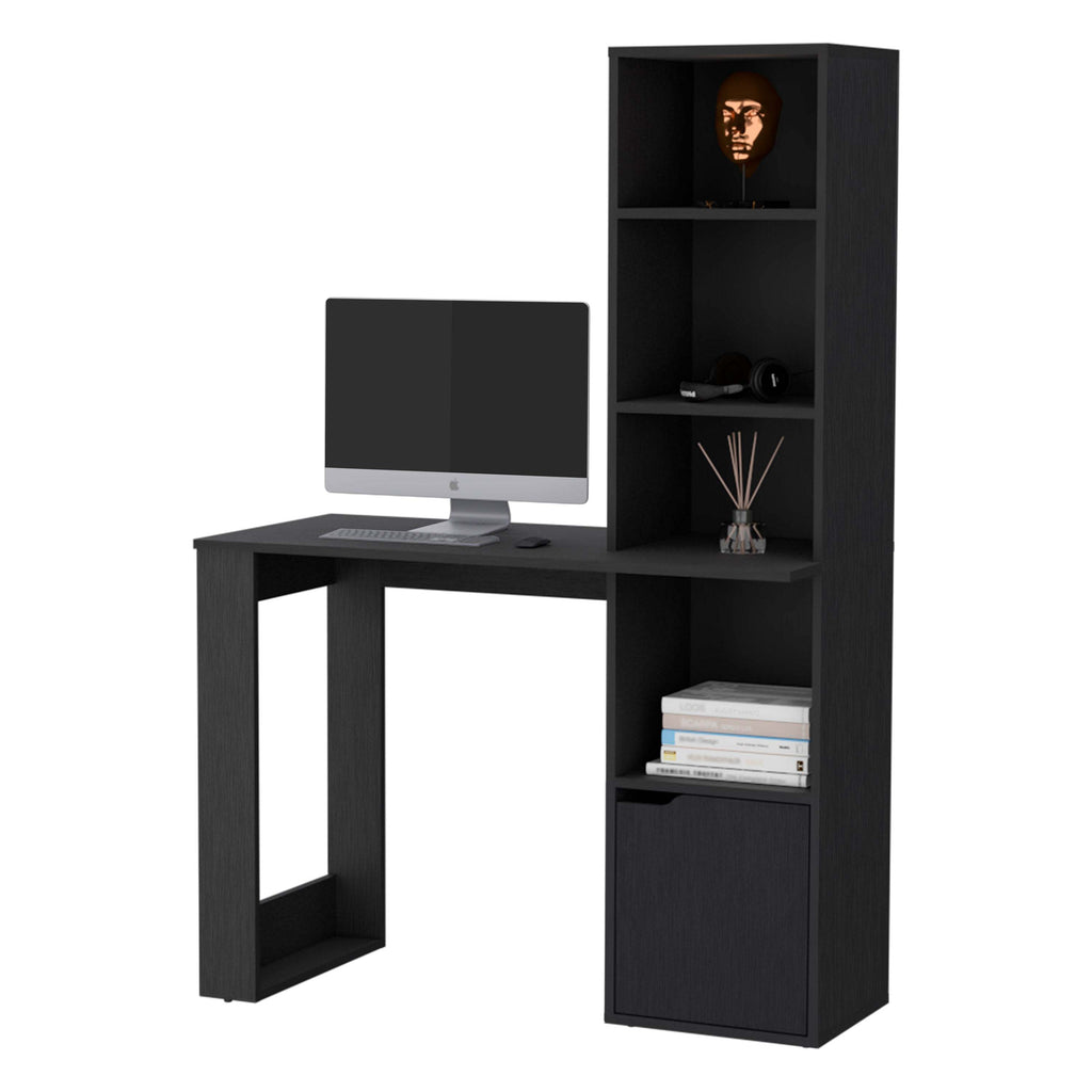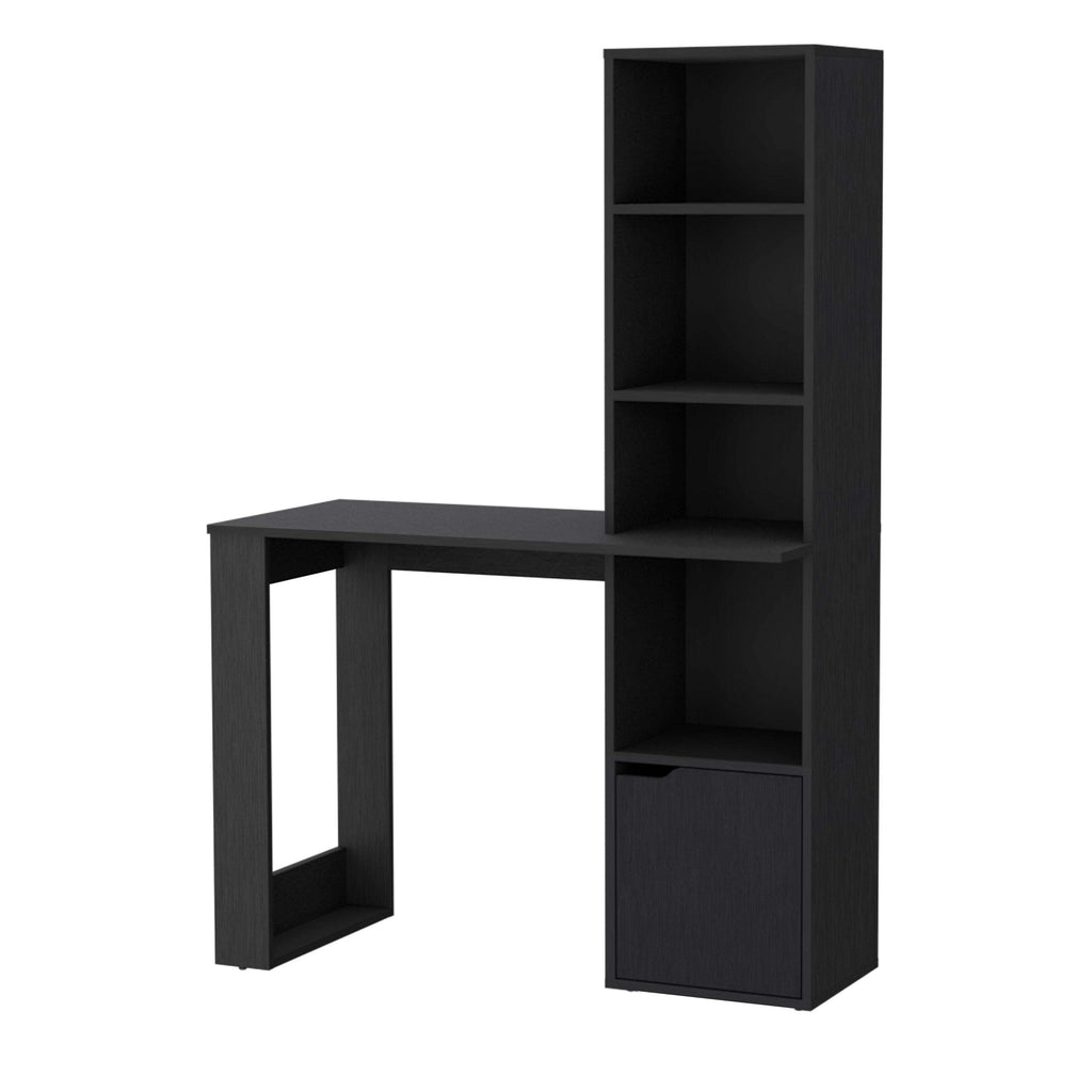 This desk offers a spacious work surface for all your projects, promoting productivity in a clutter-free environment. With an integrated 4-tier open bookcase and a single-door cabinet for discreet storage, it seamlessly combines style and functionality to enhance your workspace.