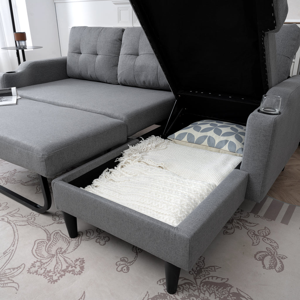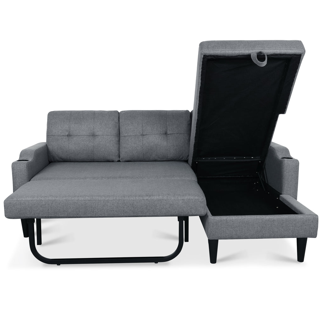 - Built-in storage space is easy to use and spacious enough to store blankets, pillows, or something else.