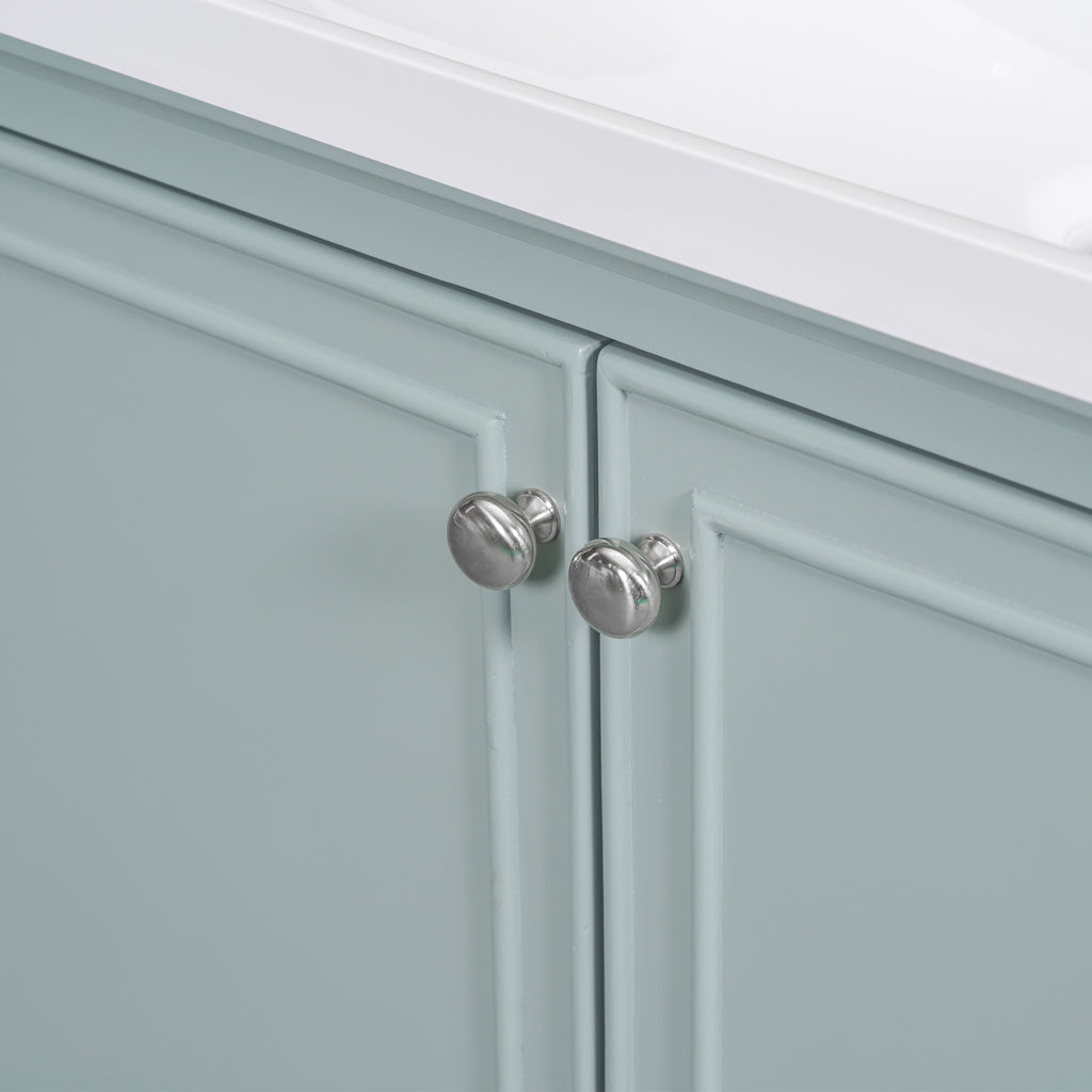 - Solid Wood & MDF Board: As the functional furniture in bathroom, the following materials are used for this elegant bathroom vanity base: solid wood and MDF boards. Solid wood as a frame makes it strong and corrosion-resistant. MDF boards are wearable and durable as well.