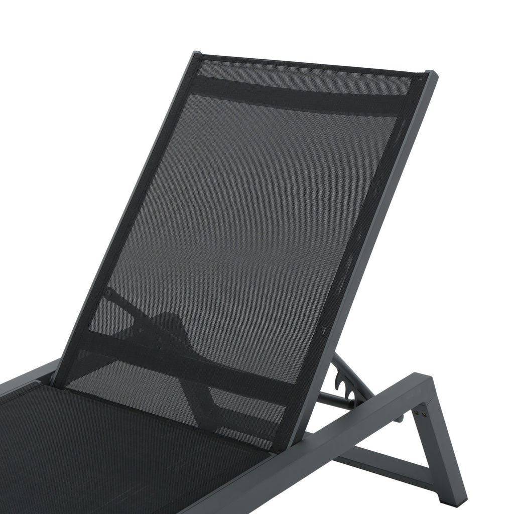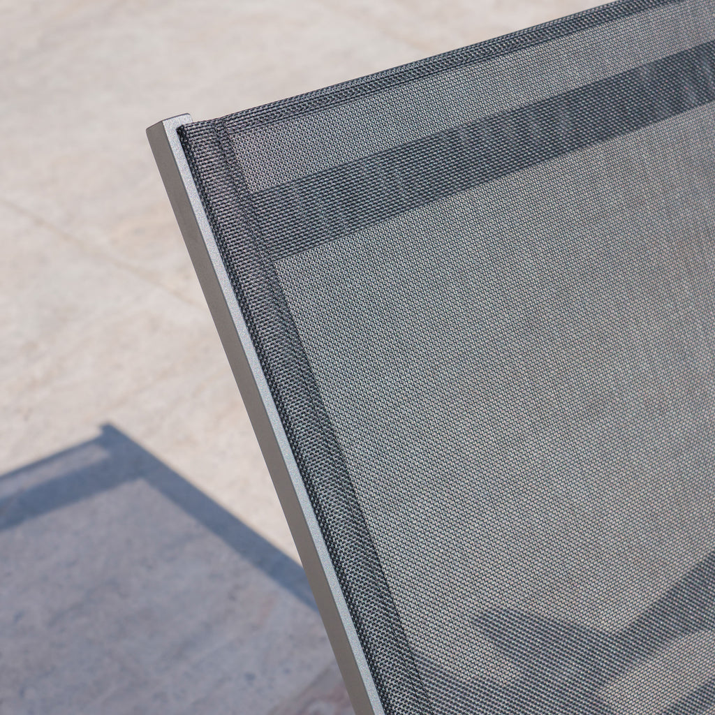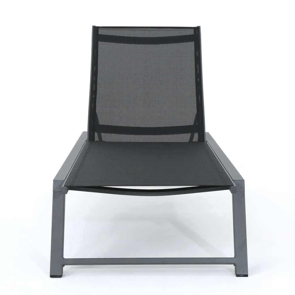 - The lounge has an aluminum frame and an outdoor mesh seat making it very comfortable and durable.