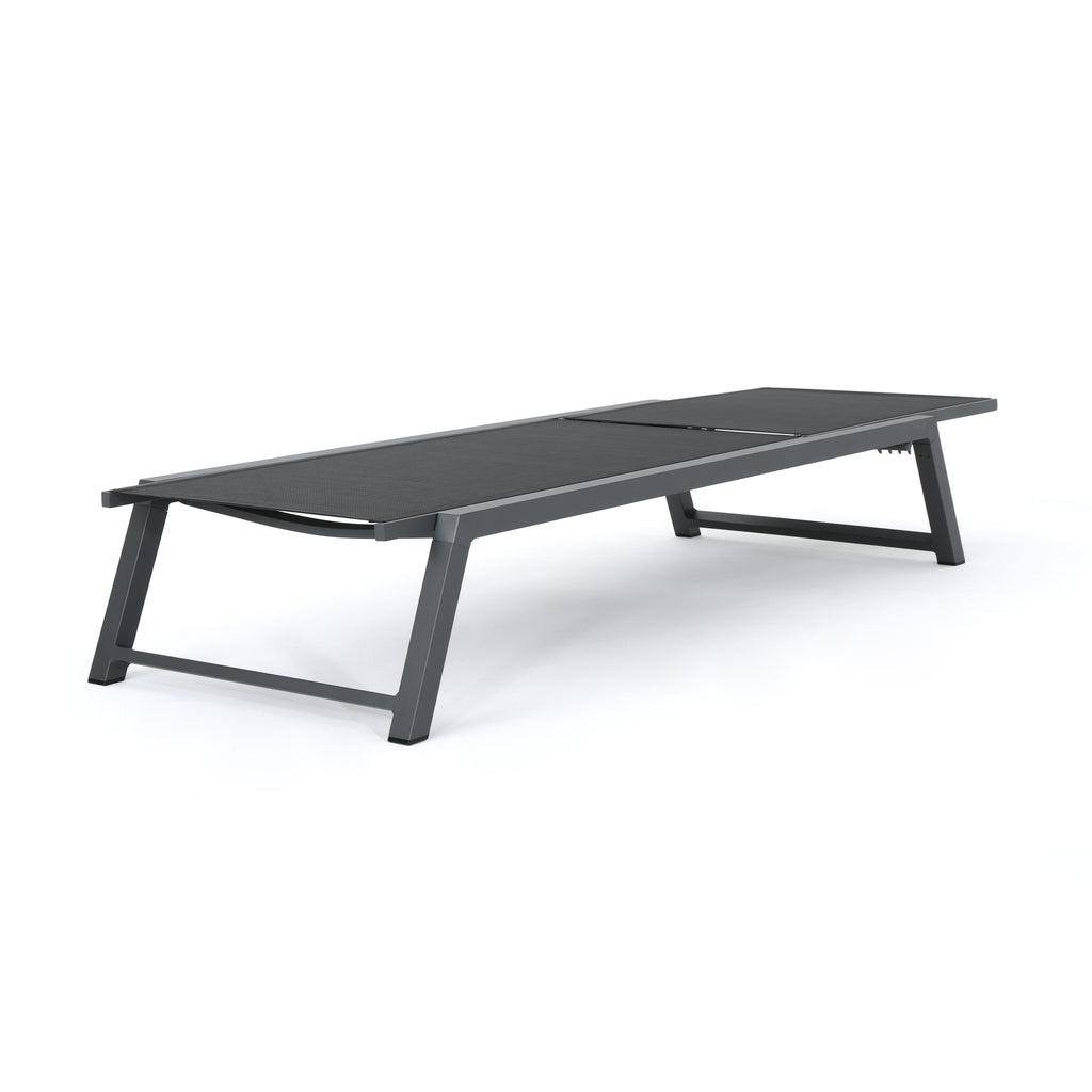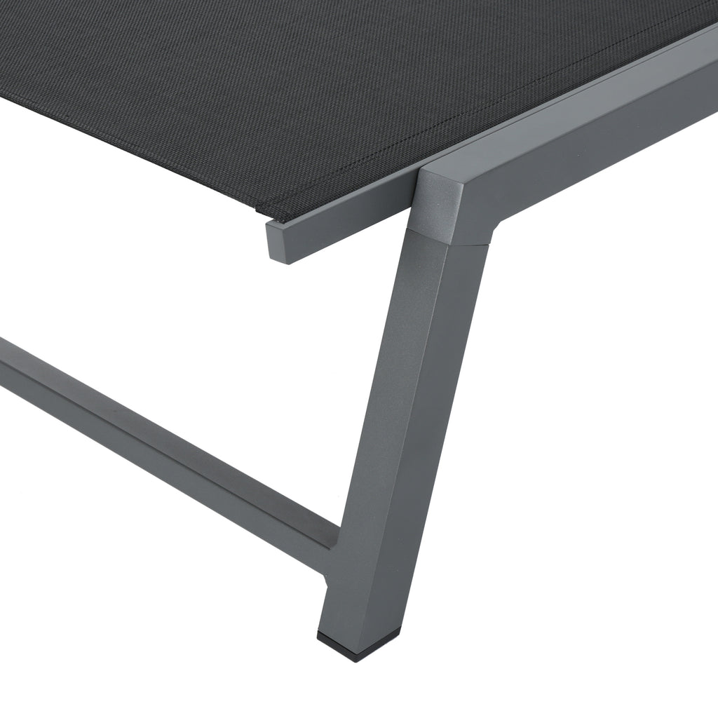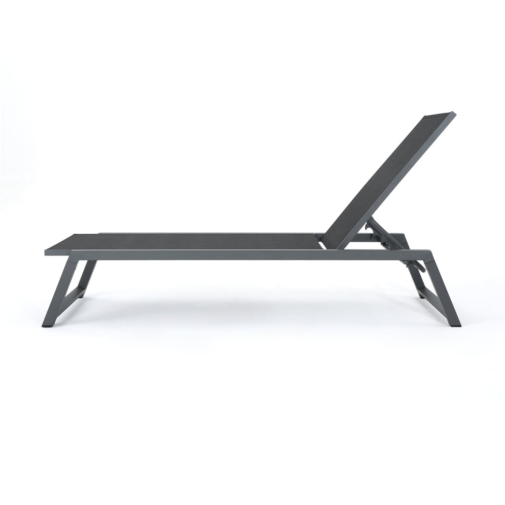 - The lounge has an aluminum frame and an outdoor mesh seat making it very comfortable and durable.