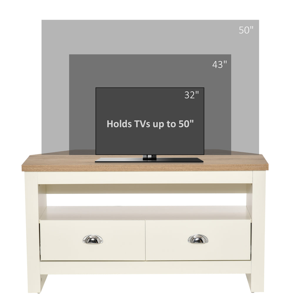 - Solid Wood Frame: The MDF frame ensures stability and increased weight capacity, suitable for TVs up to 50 inches. The height of the supporting base is 3.25', so you can easily clean under this corner tv stand.