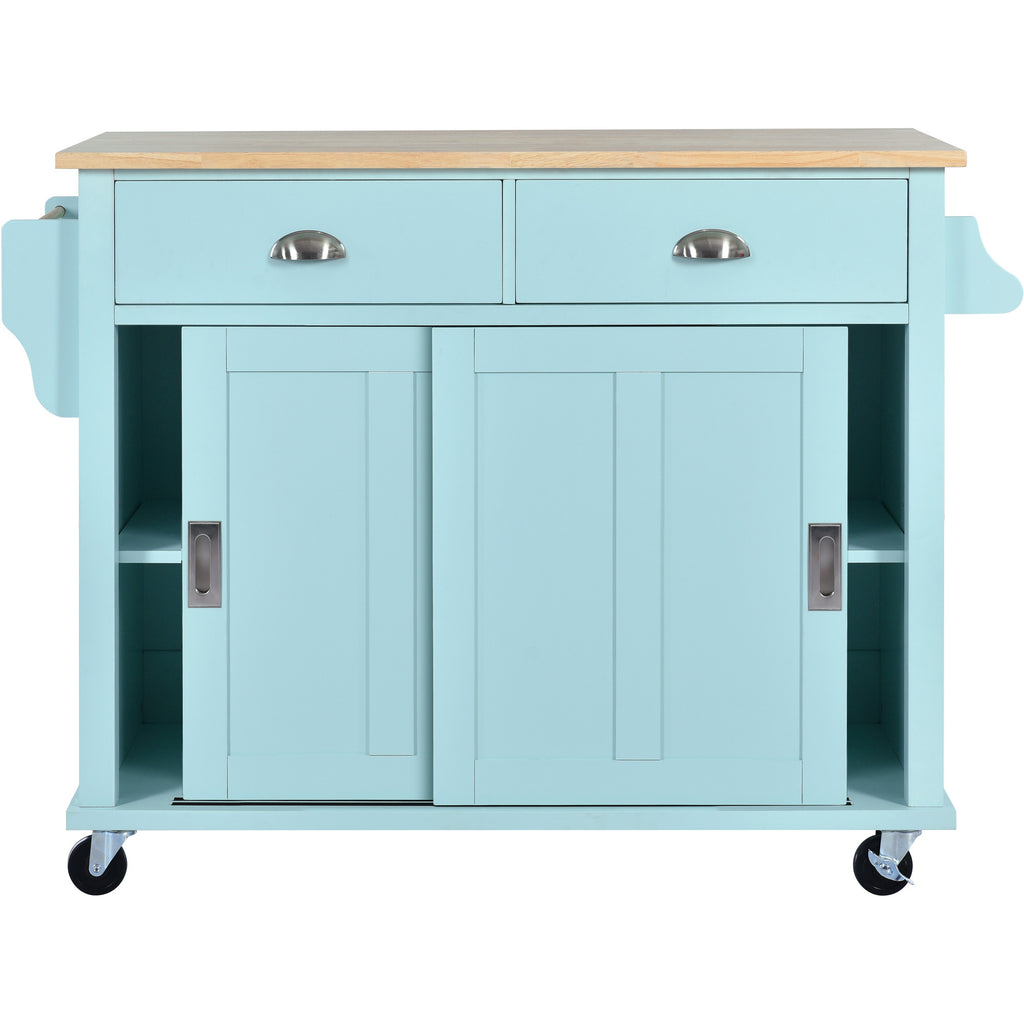Kitchen Cart with Rubber wood Drop-Leaf Countertop