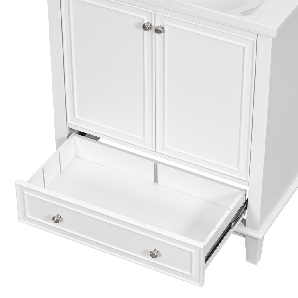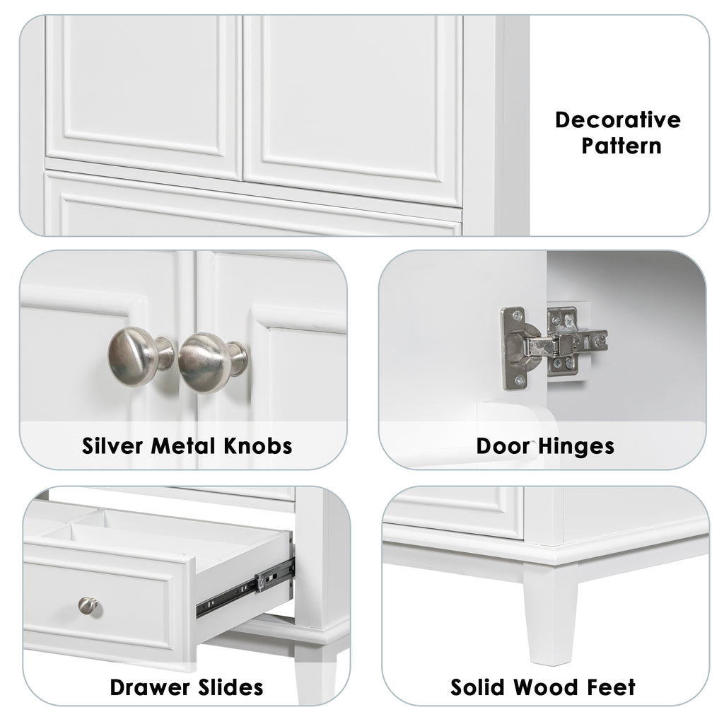 - Assembly Required: This bathroom vanity needs assembly. All the hardware(screws, metal door hinges and handles, drawer slides, anti-toppling device etc.) and instruction manual are provided. You can install it according to the instruction easily.